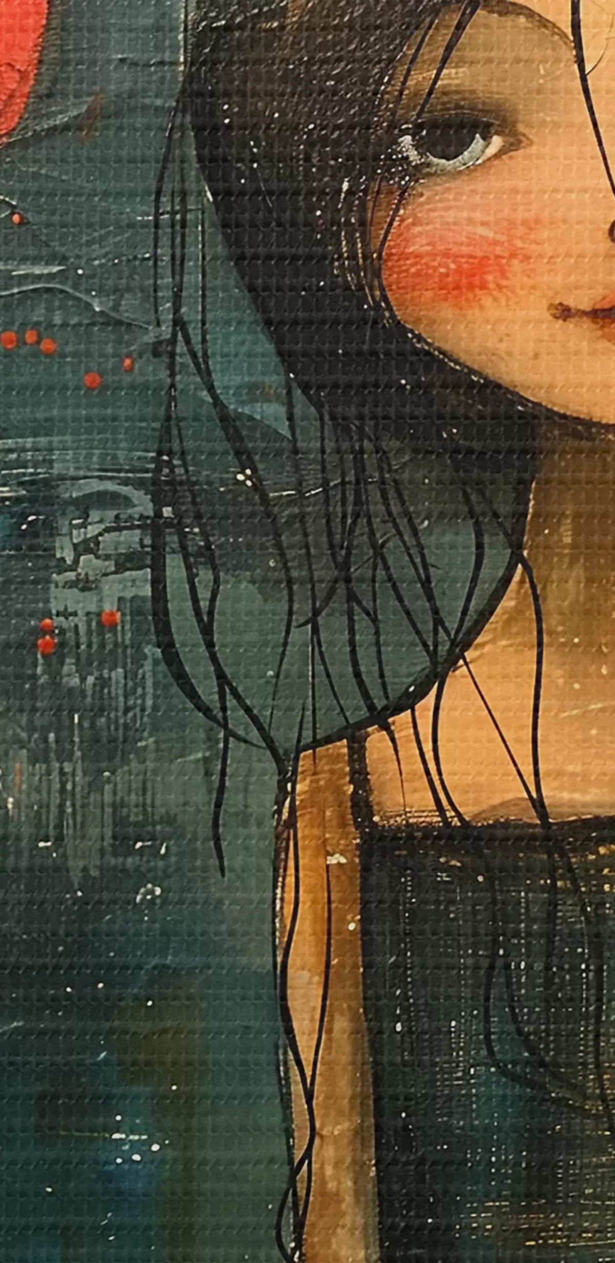 Drobny splot nici na tym płótnie przypomina powierzchnię profesjonalnych płócien artystycznych.