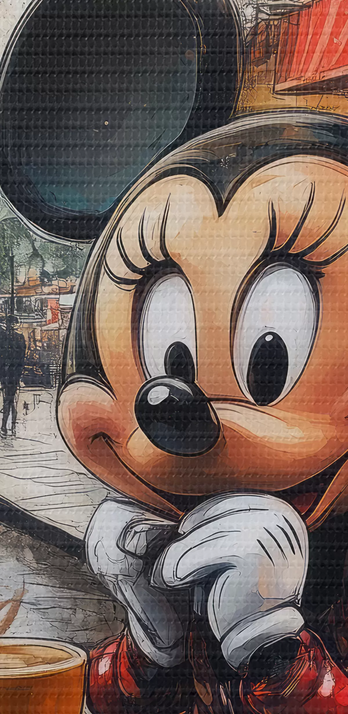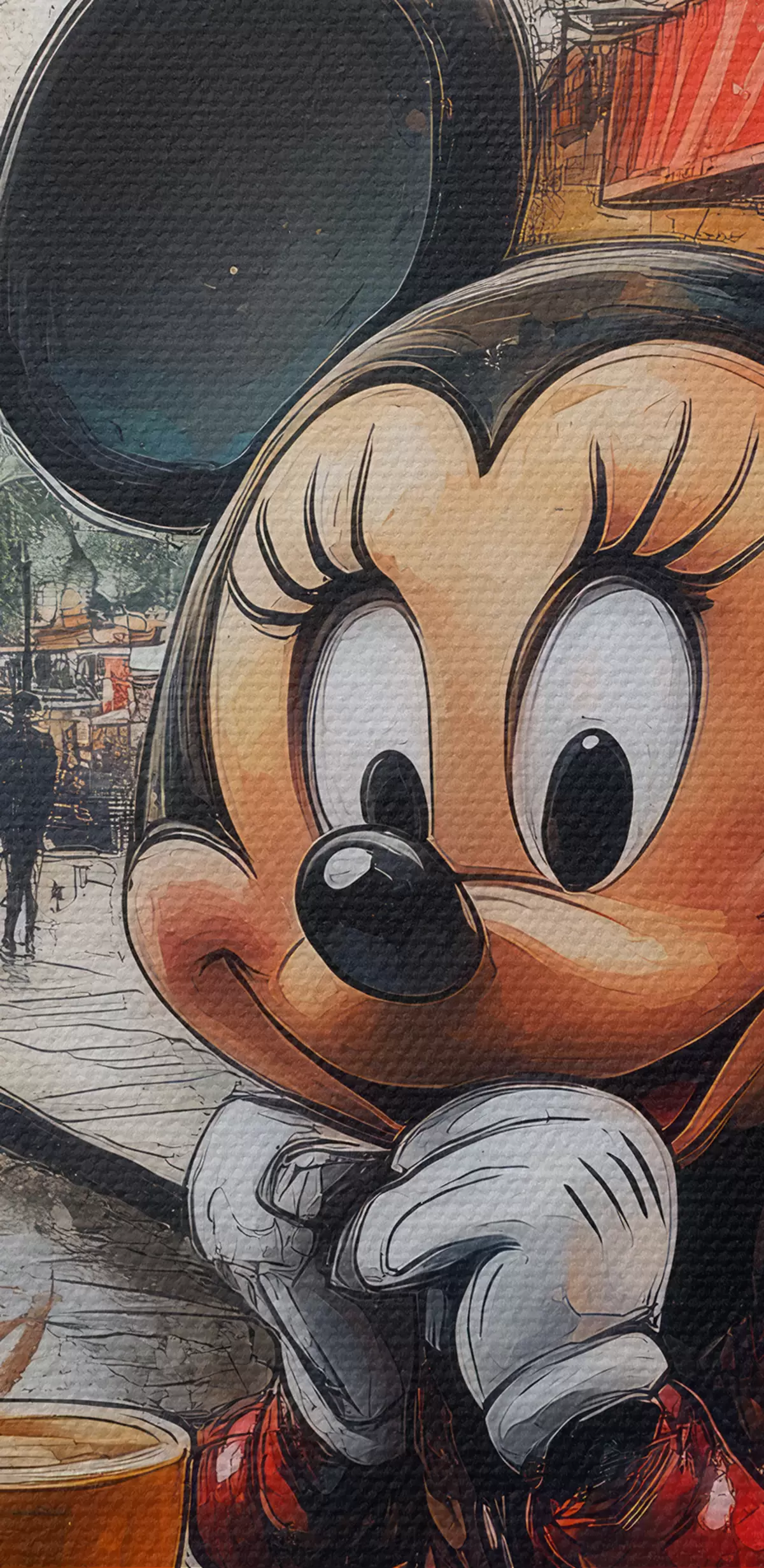 Obraz Dziewczynka z Myszką Miki pijąca kawę na tle wieży Eiffla w Paryżu Nr s40972
