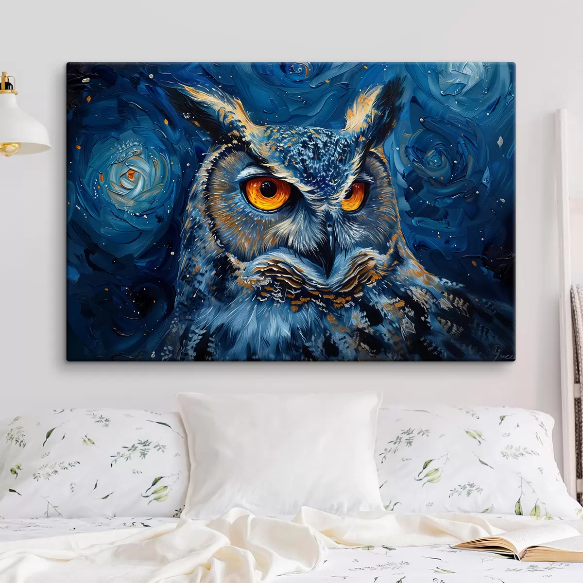 Obraz Nocne spojrzenie sowy na tle nieba w stylu Van Gogha s40982