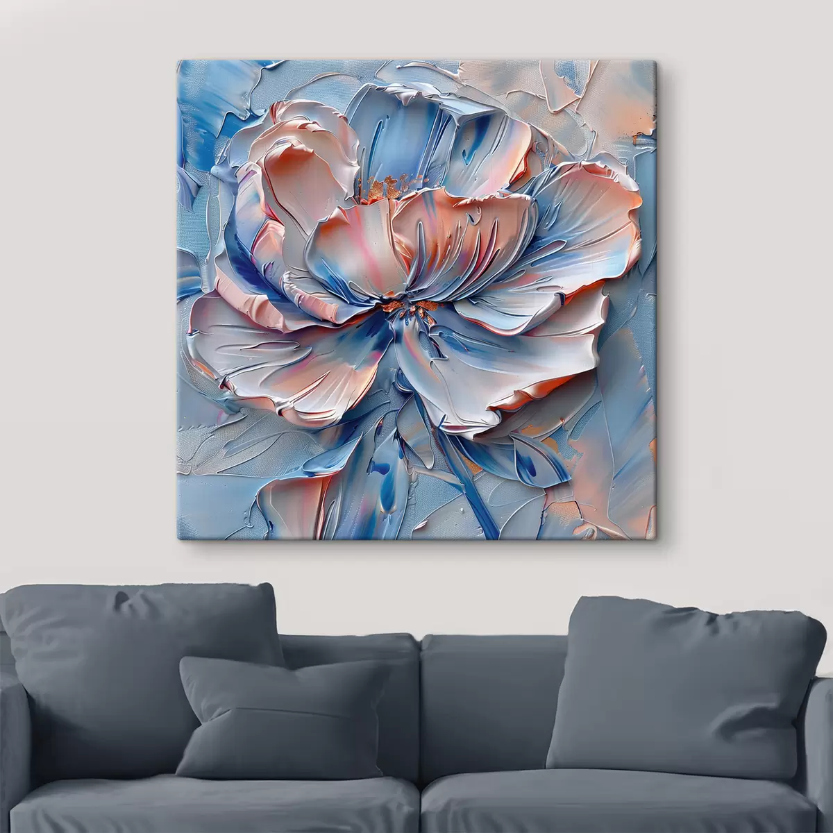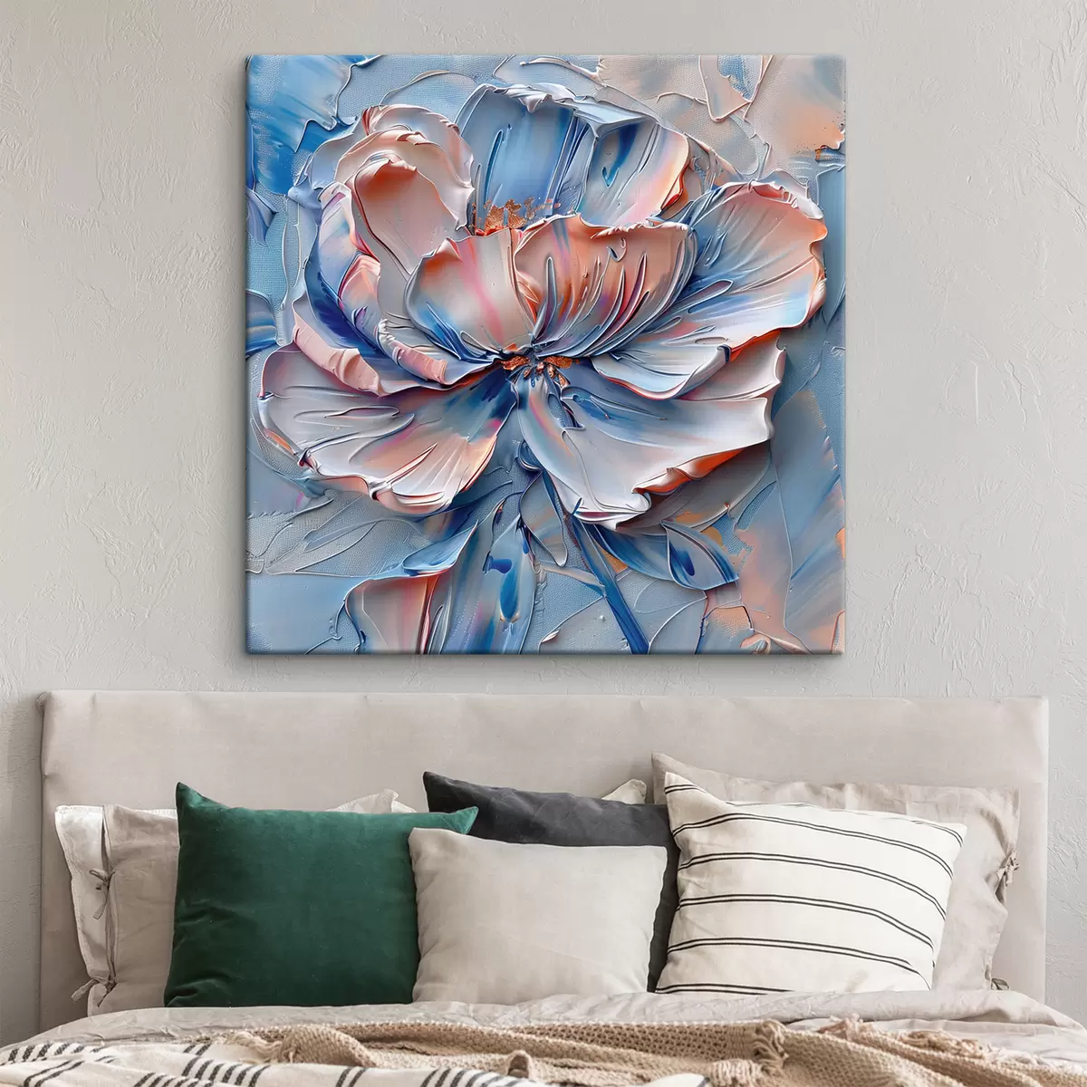 Obraz Duży kwiat z odważnymi pociągnięciami pędzla w kolorach niebieskim i brzoskwiniowym Nr s41004