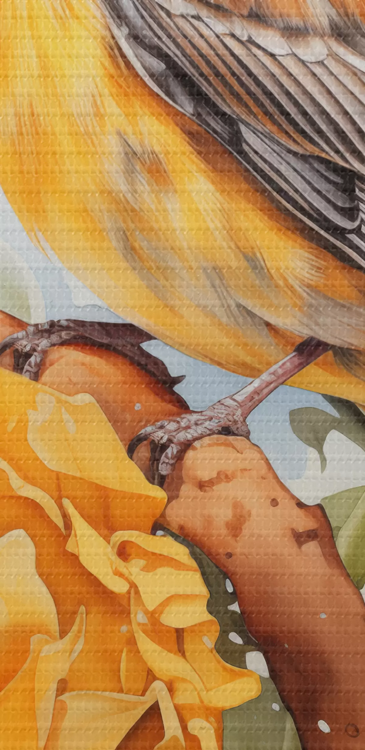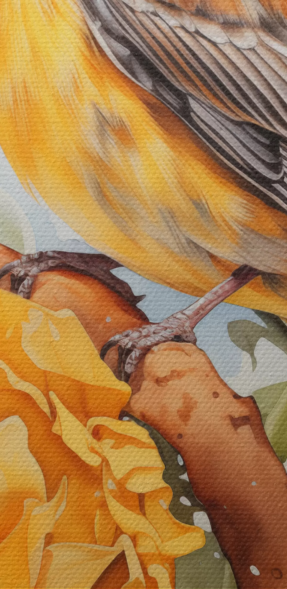 Obraz Żółty ptak siedzący na słoneczniku akwarela s41015
