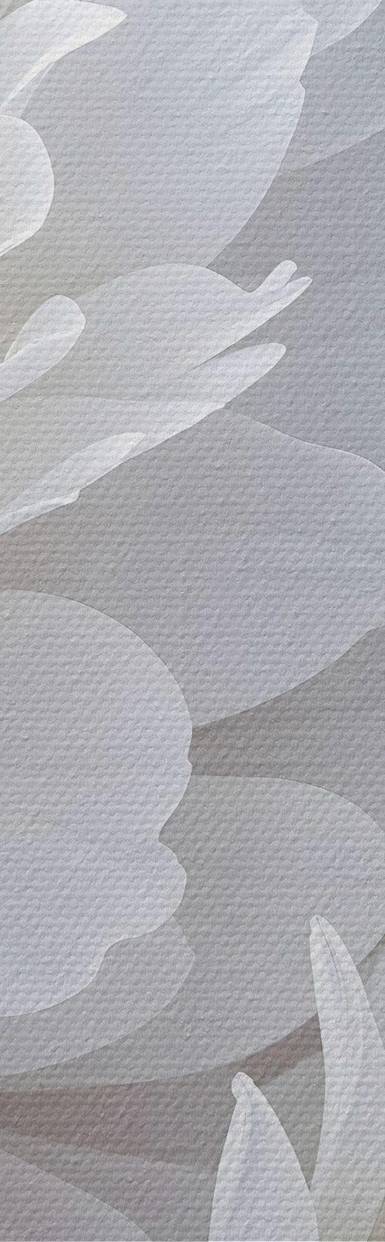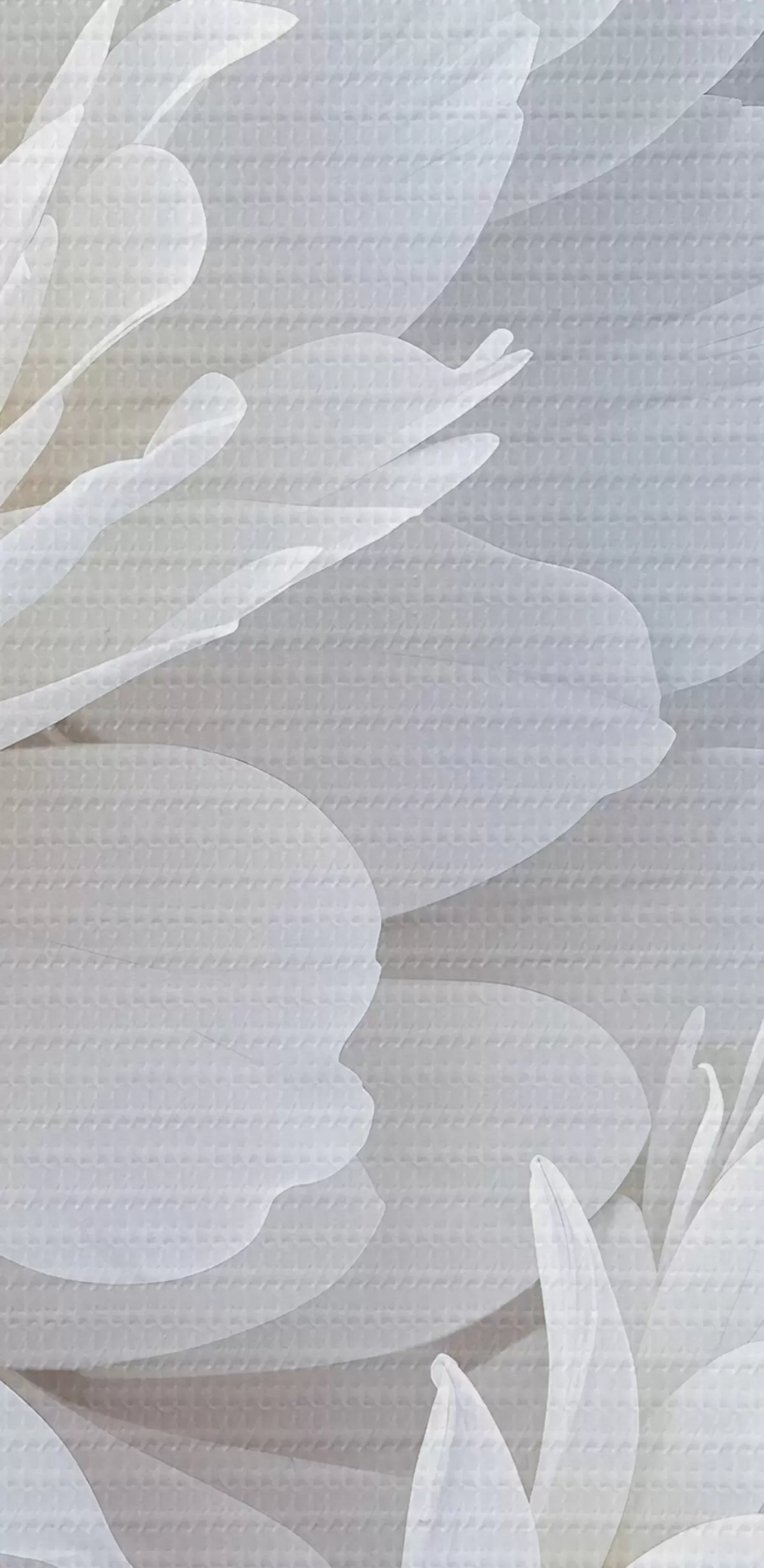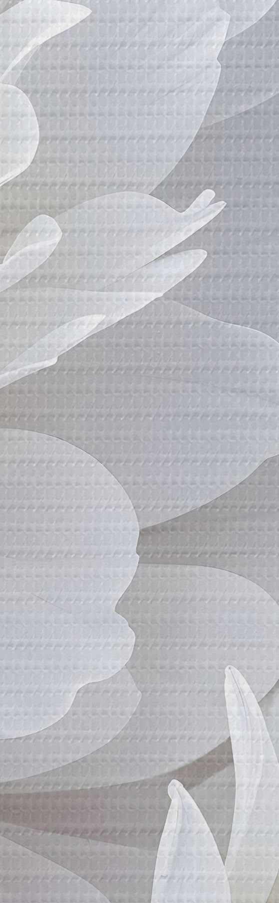 Obraz Białe kwiaty piwonii z miękkimi, delikatnymi płatkami na jasnoszarym tle s41085