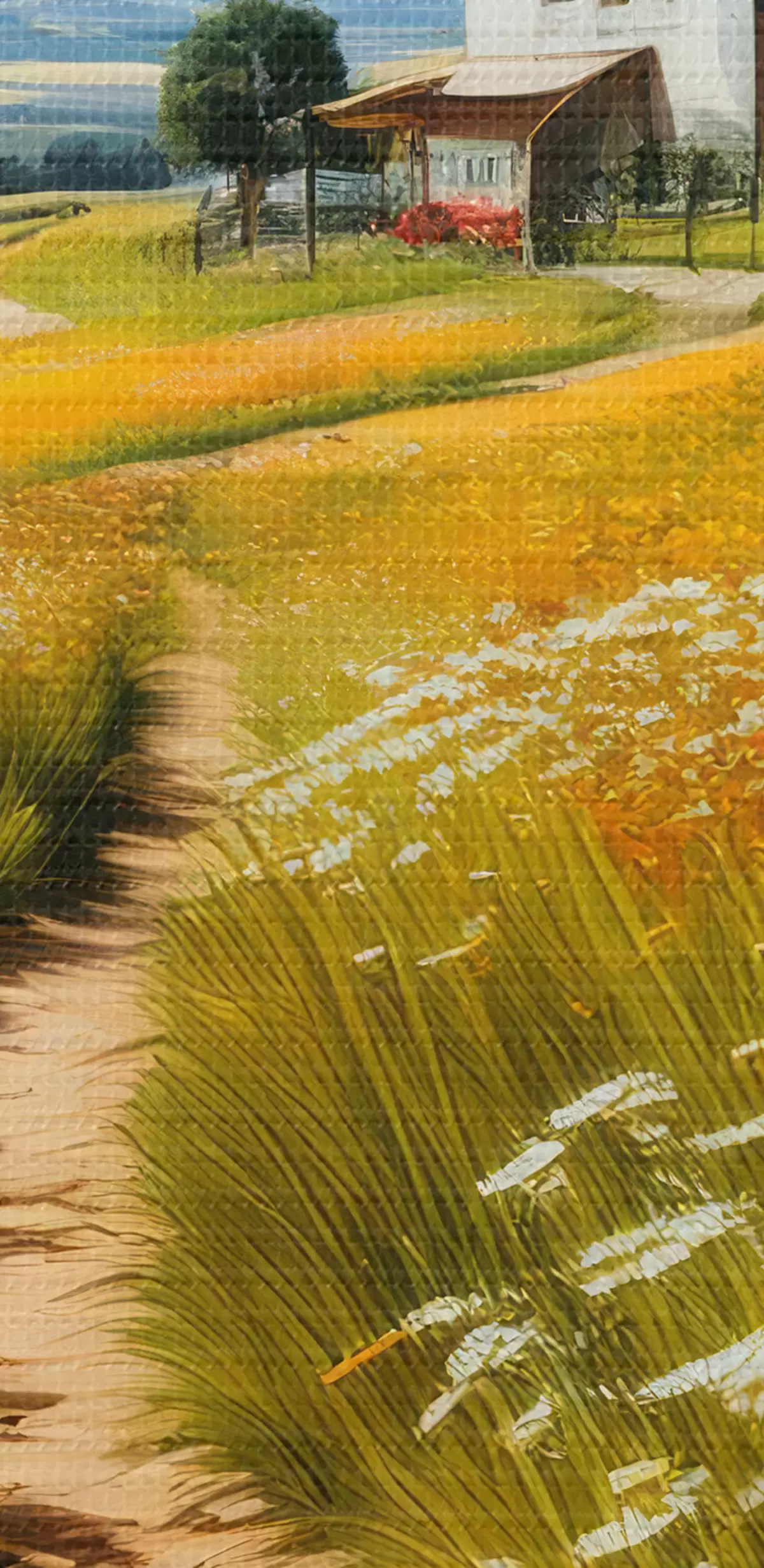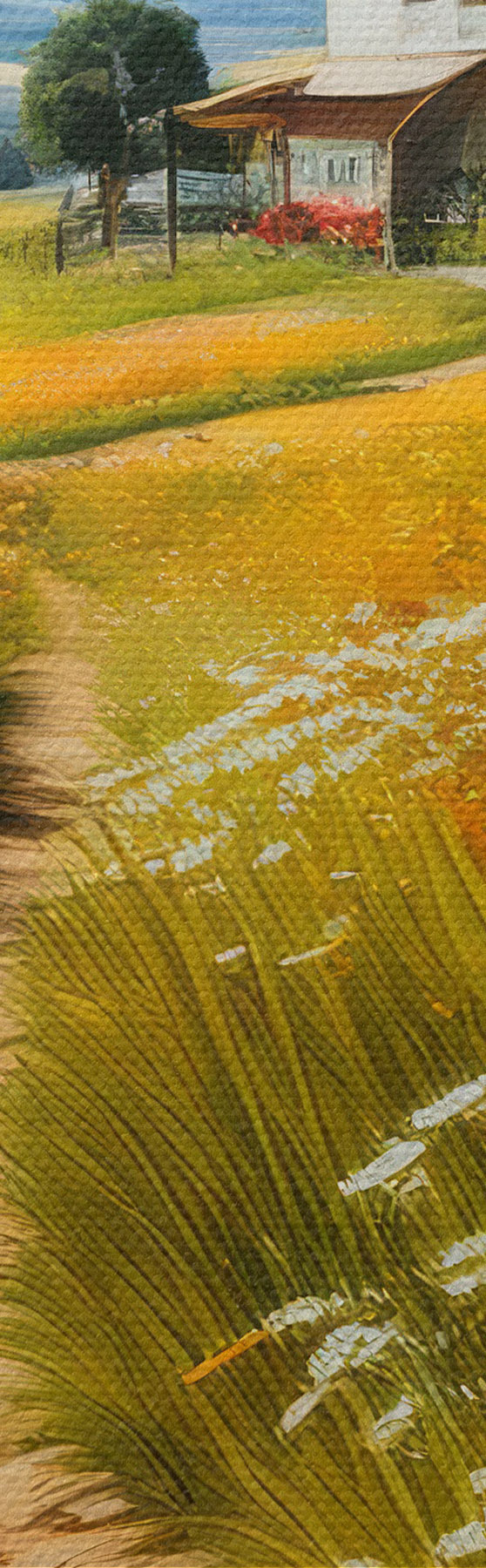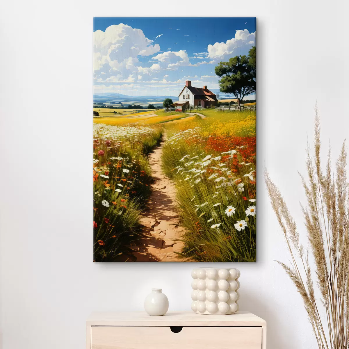 Obraz ścieżka na kwitnącym polu i dom Nr s41109
