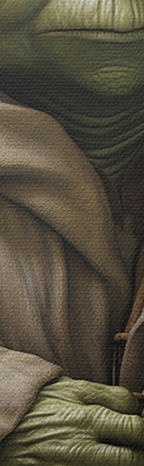 Drobny splot nici na tym płótnie przypomina powierzchnię profesjonalnych płócien artystycznych.