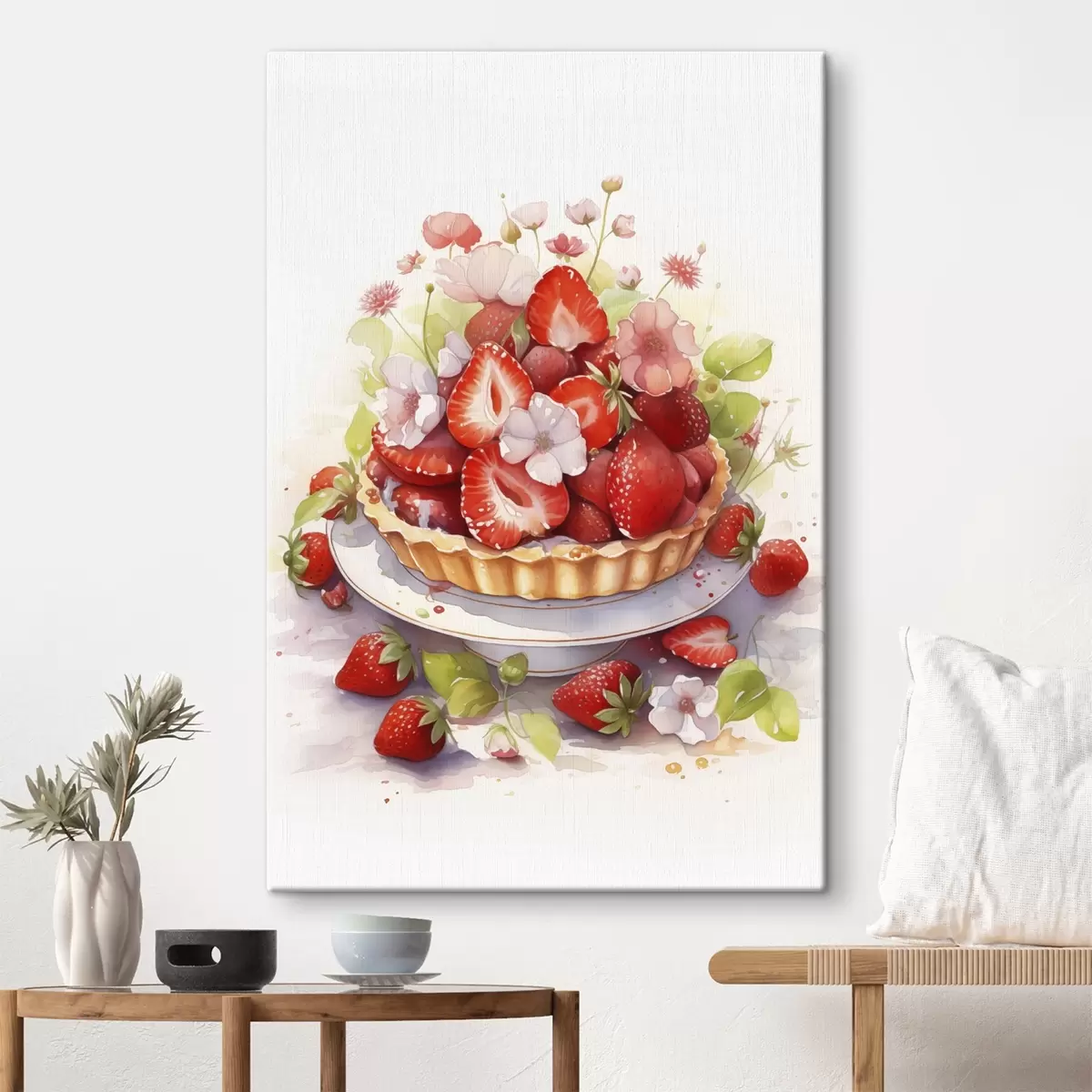 Obraz Tarta truskawkowa, akwarela, kwiaty Nr s41177