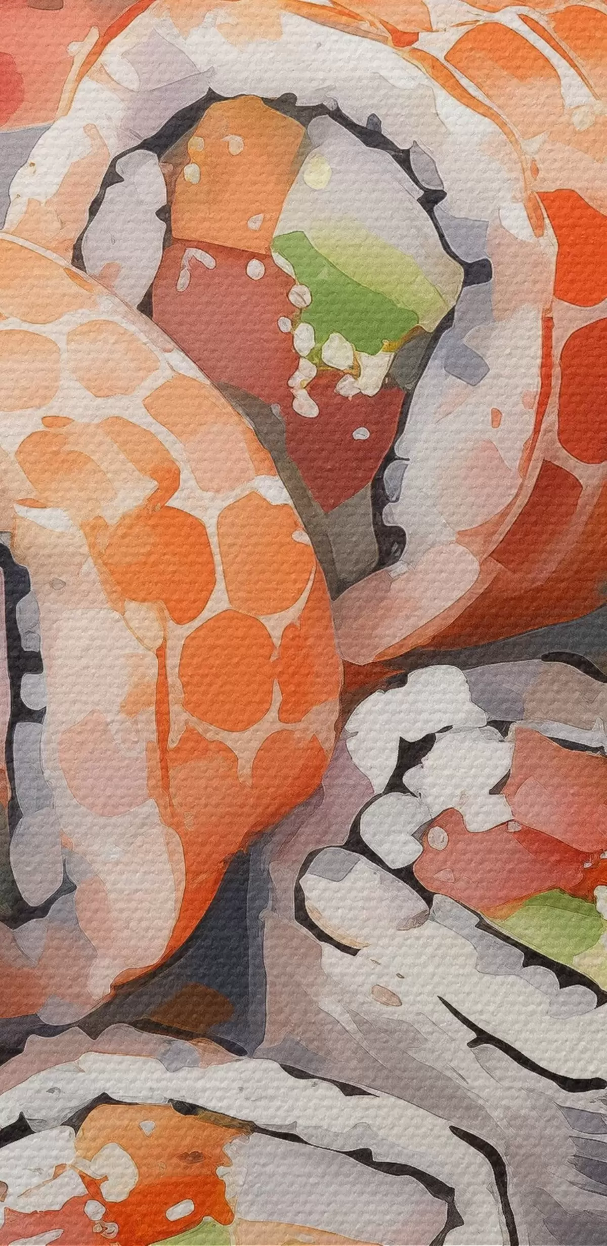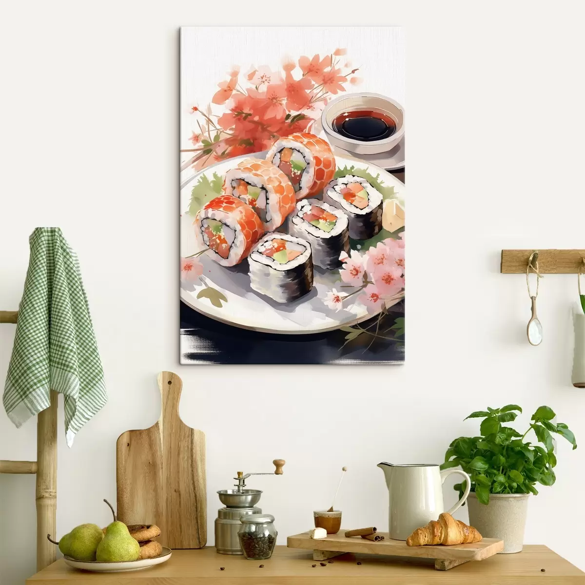 Obraz Sushi na talerzu, akwarela, kwiatowy, japoński s41179