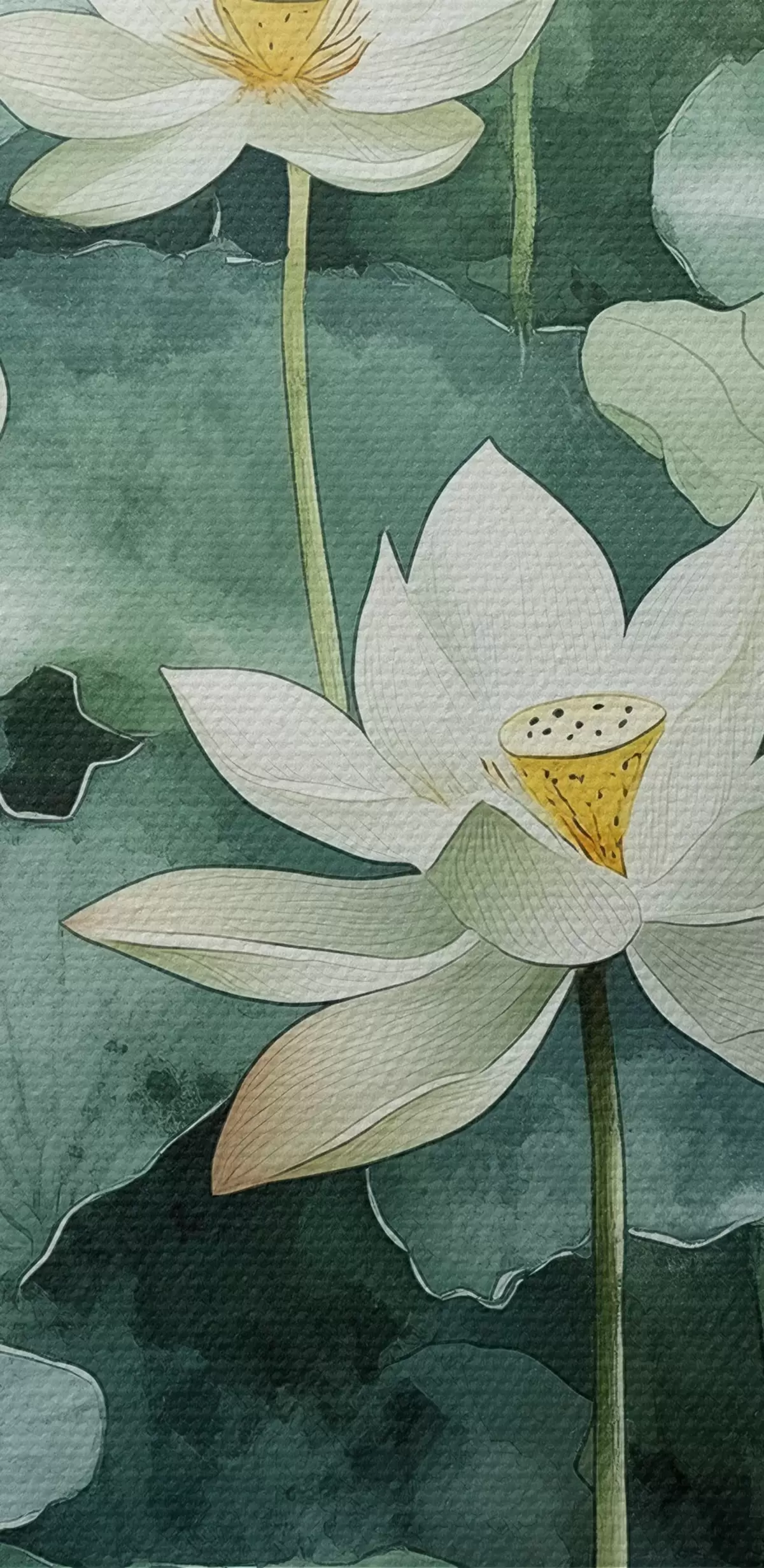 Obraz Lotosy w stawie, akwarela, zieleń s41228