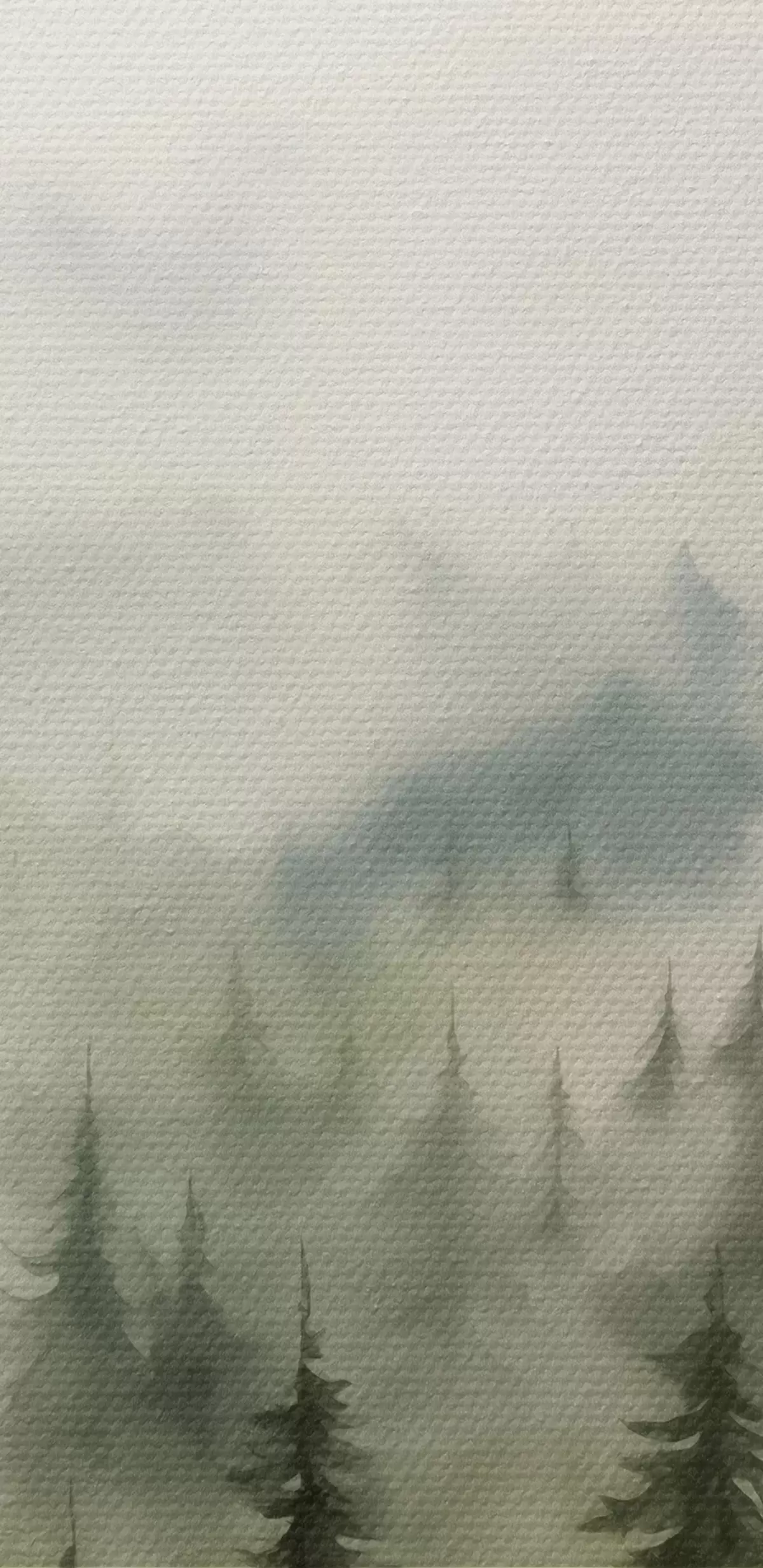 Obraz Zielony las na tle gór i mgły akwarela Nr s41241