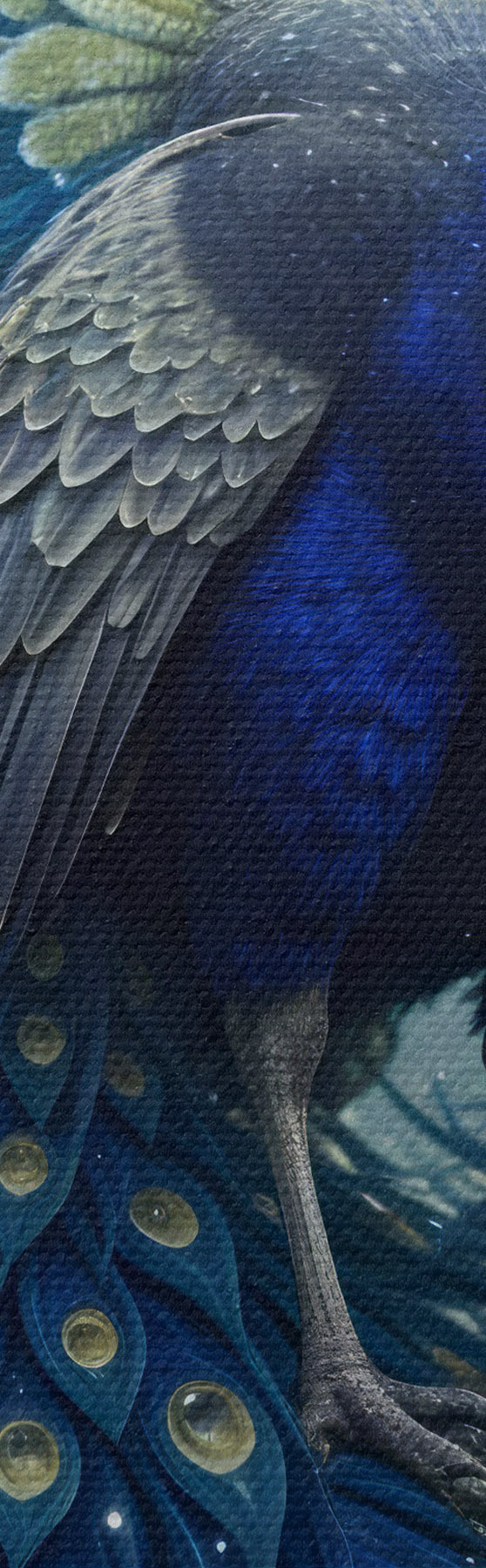 Obraz Żywy i majestatyczny paw na tle rozgwieżdżonego nocnego nieba, tworzący magiczną i eteryczną atmosferę Nr s41256