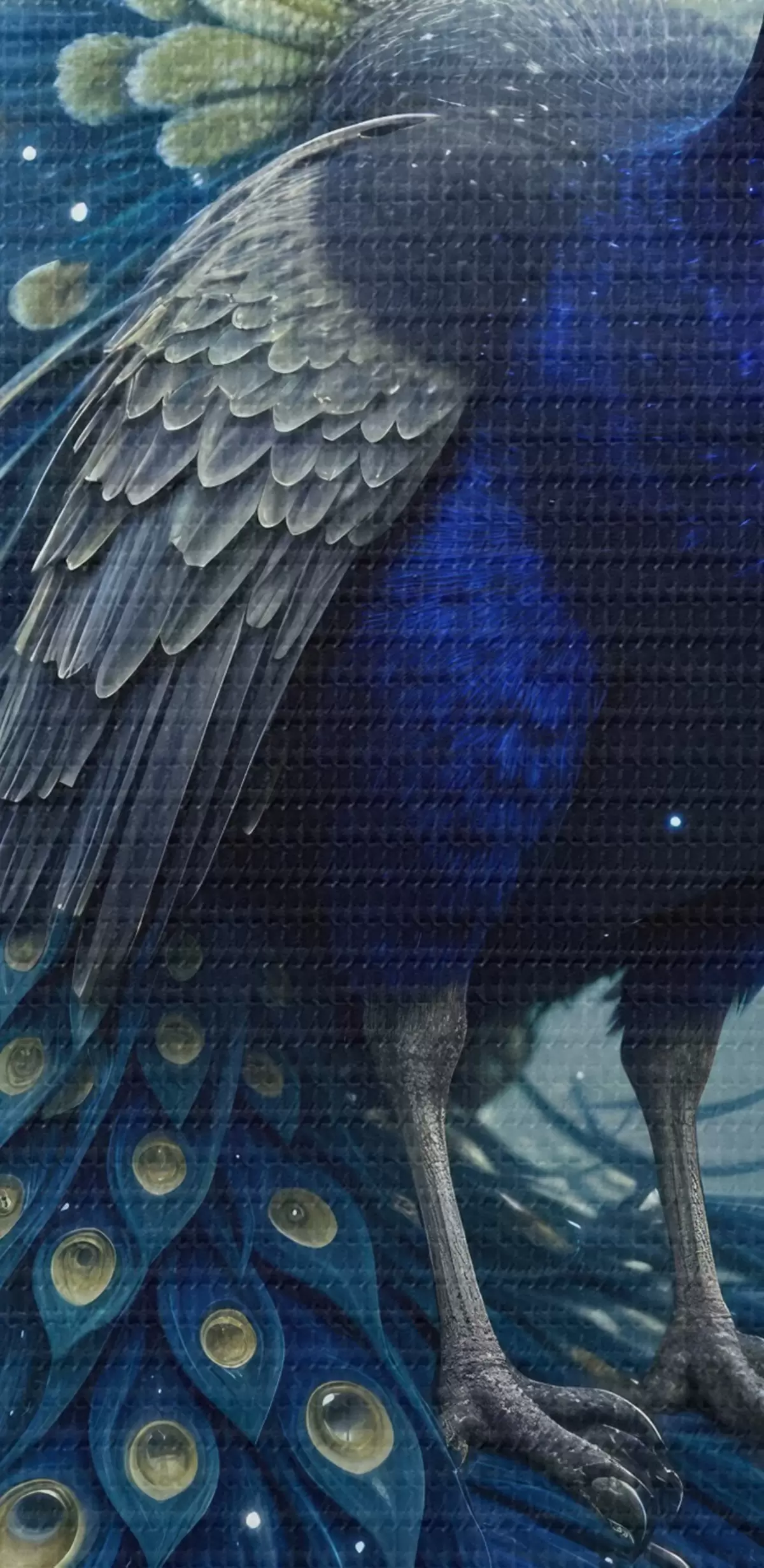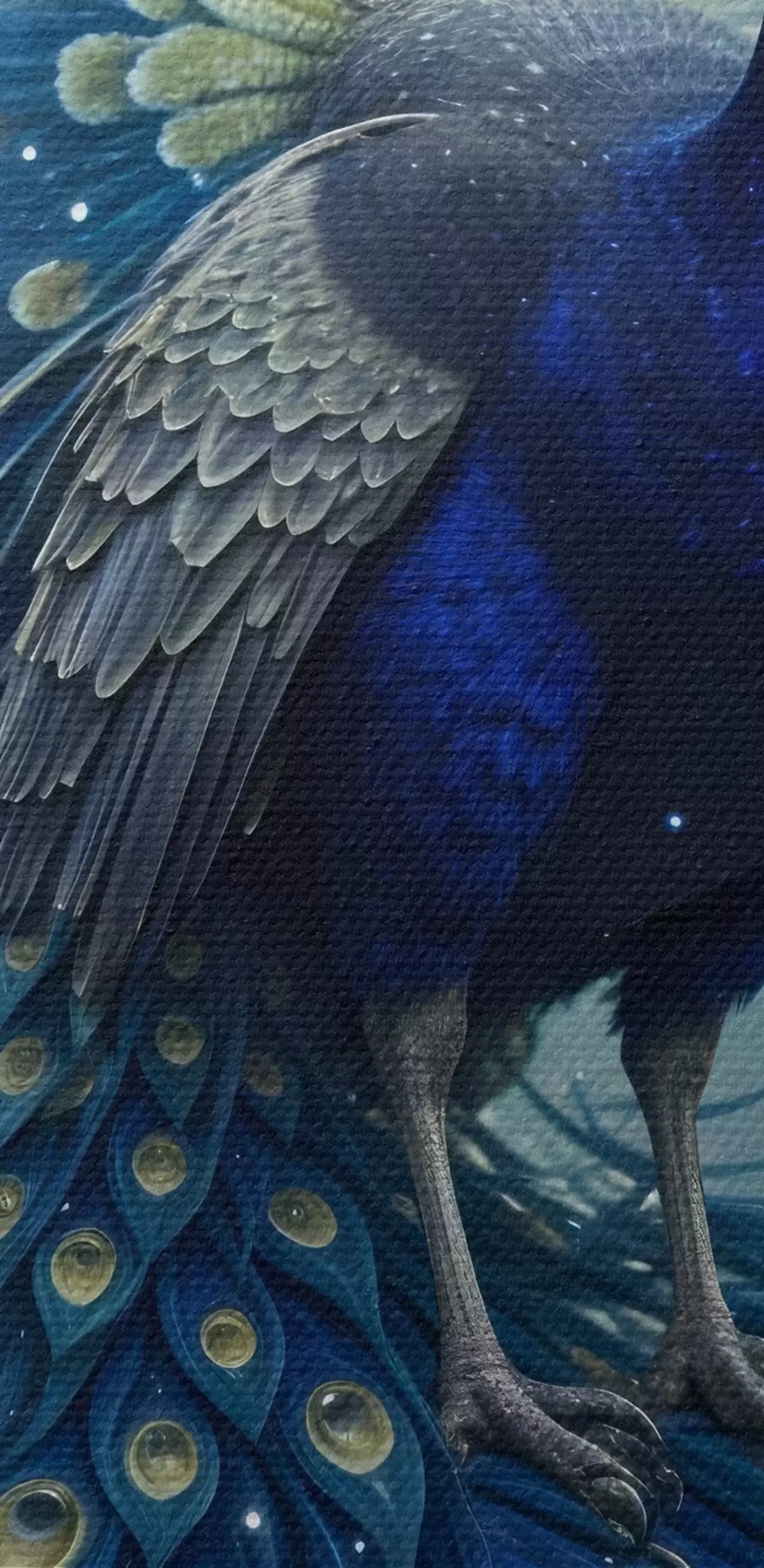 Obraz Żywy i majestatyczny paw na tle rozgwieżdżonego nocnego nieba, tworzący magiczną i eteryczną atmosferę Nr s41256