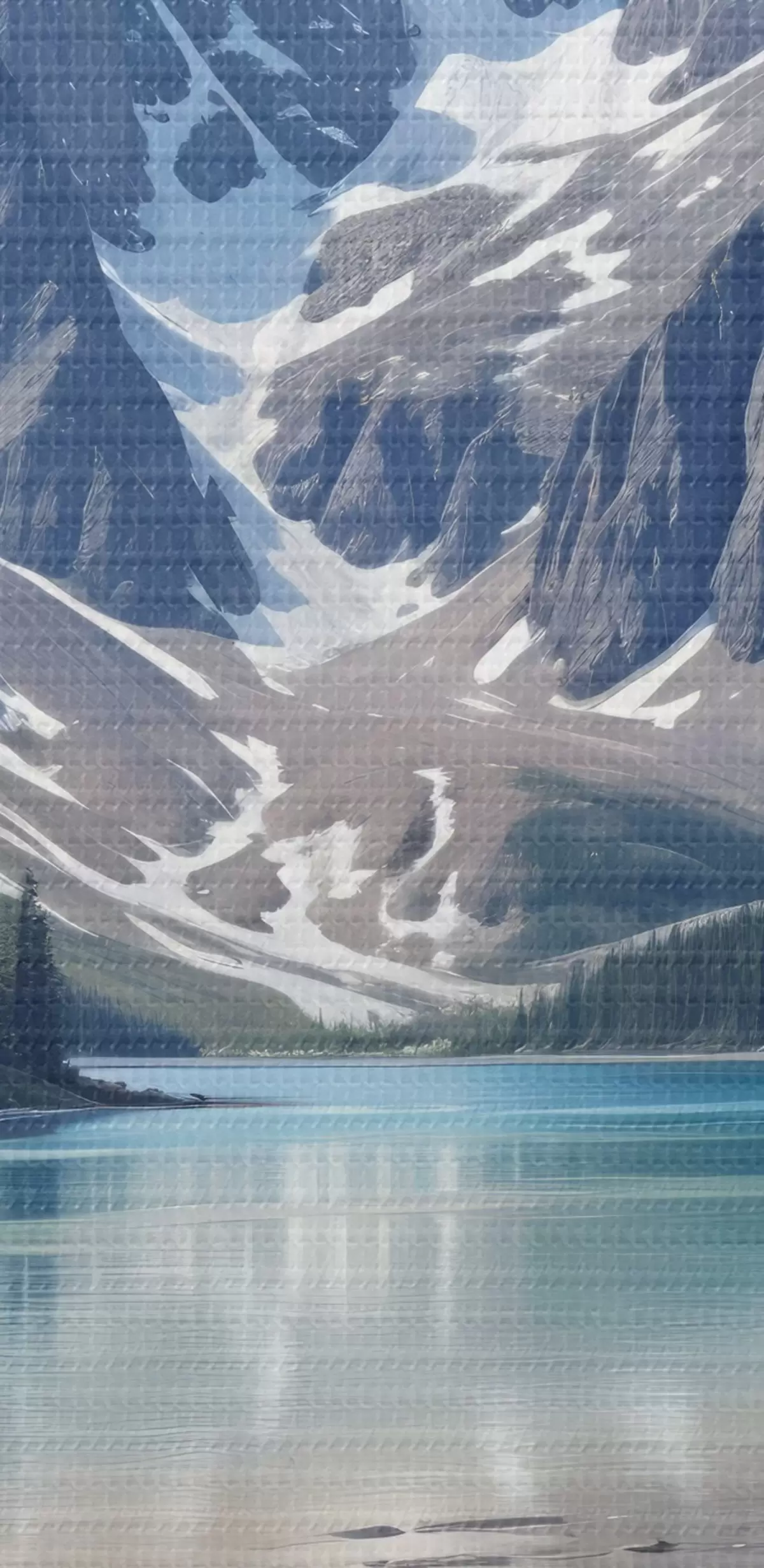 Obraz Spokojne alpejskie jezioro otoczone majestatycznymi ośnieżonymi górami, z gęstym lasem i zachmurzonym niebem Nr s41264