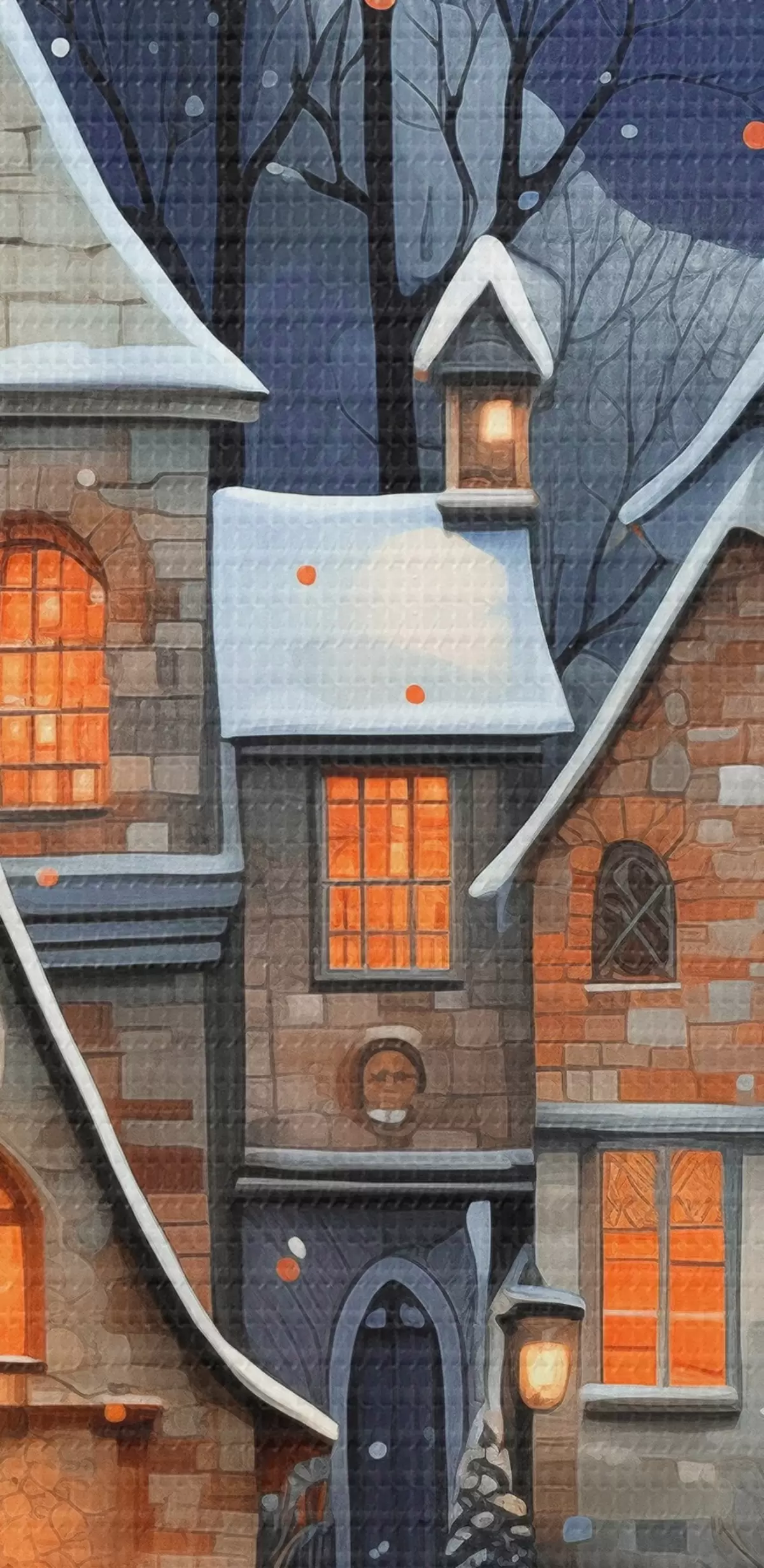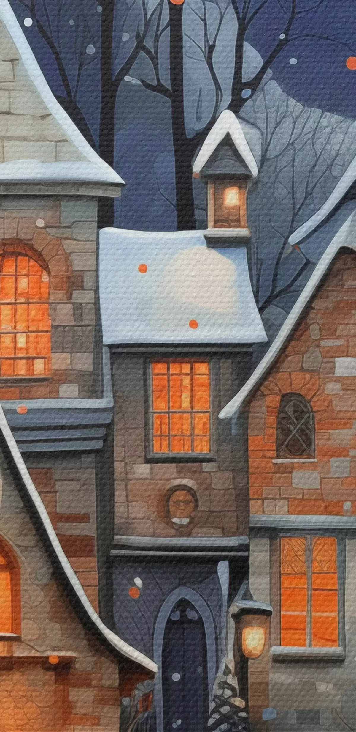 Obraz Domy w śniegu na tle rozgwieżdżonego nocnego nieba Nr s41276