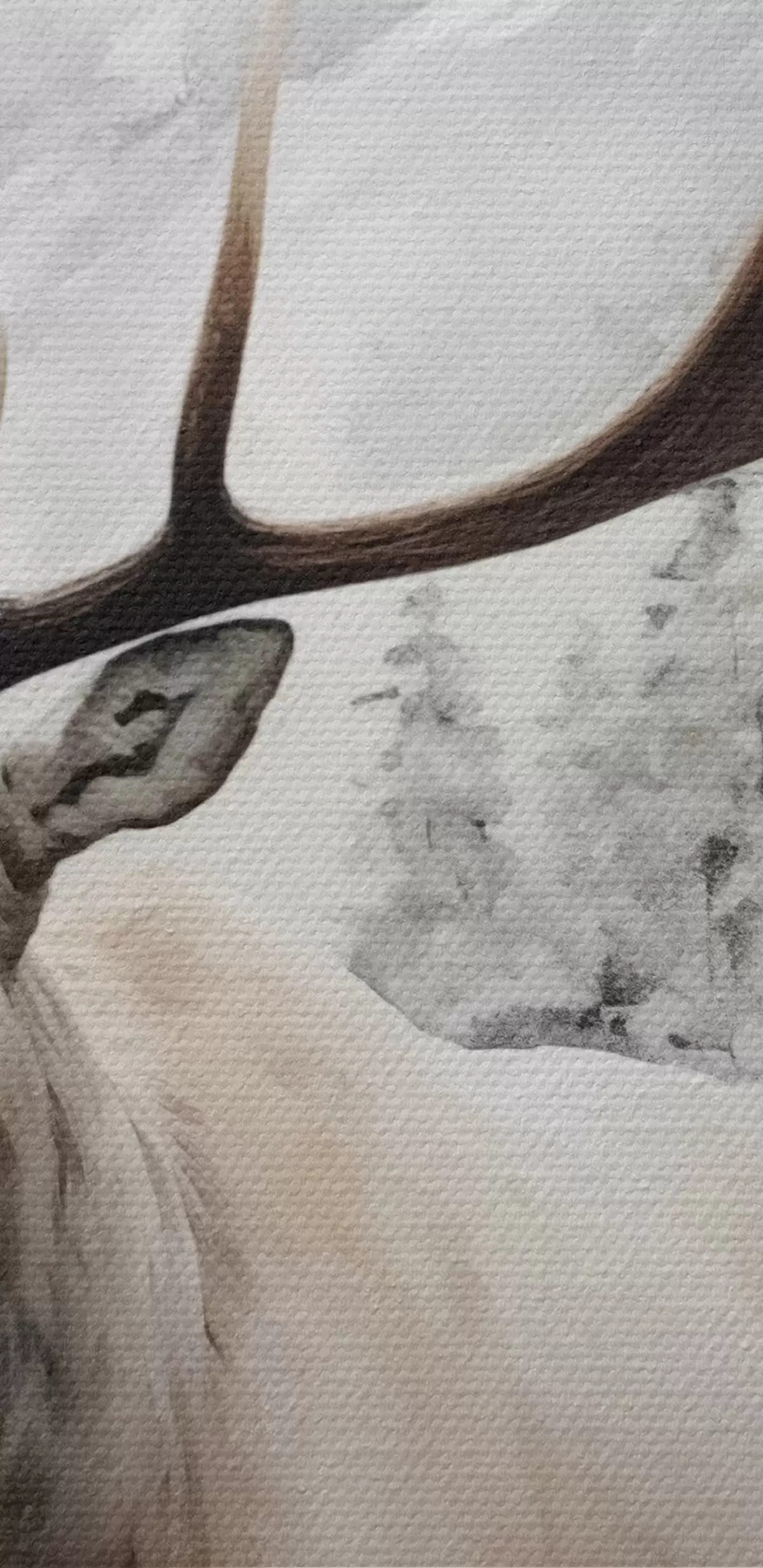 Obraz Łoś na tle zimowego lasu w śnieżnej akwareli s41284