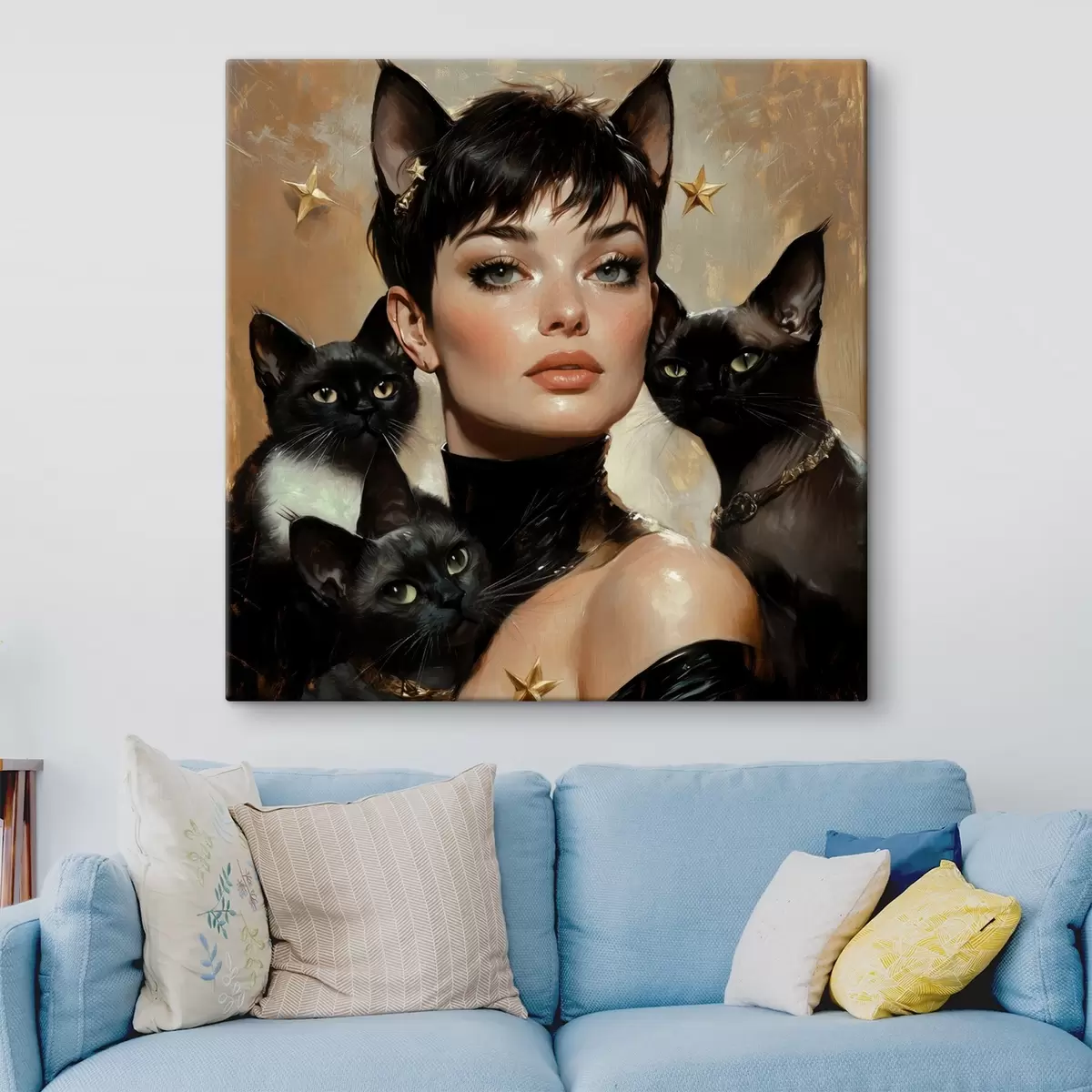 Obraz Kocia dziewczyna z czarnymi kotami Nr s41344