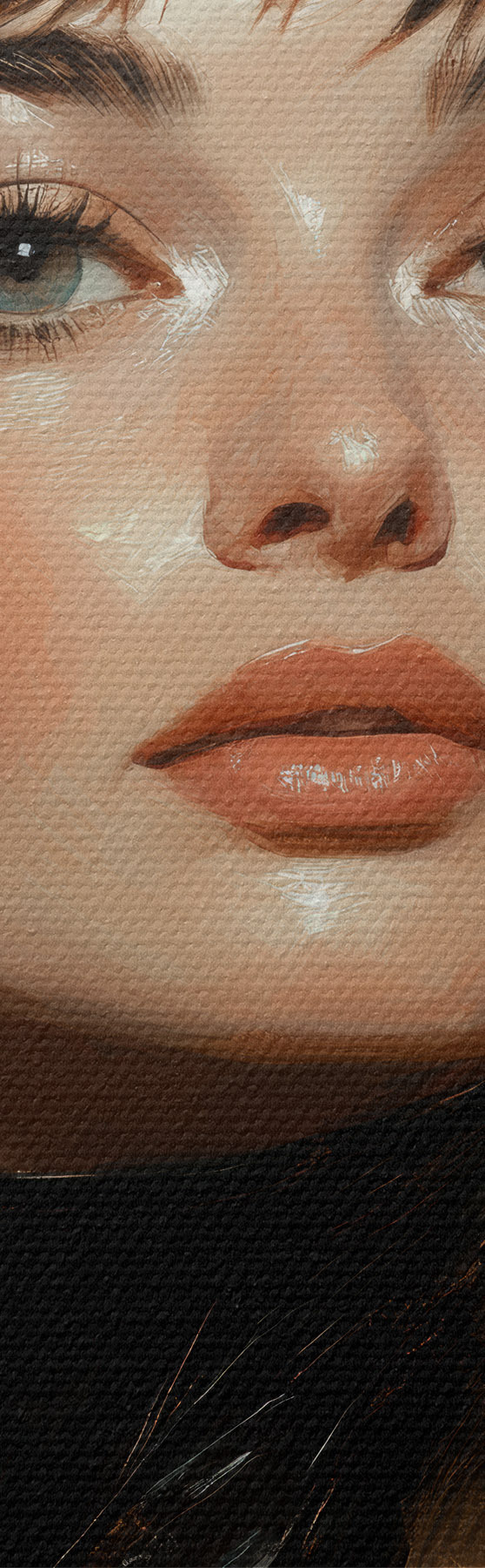Drobny splot nici na tym płótnie przypomina powierzchnię profesjonalnych płócien artystycznych.