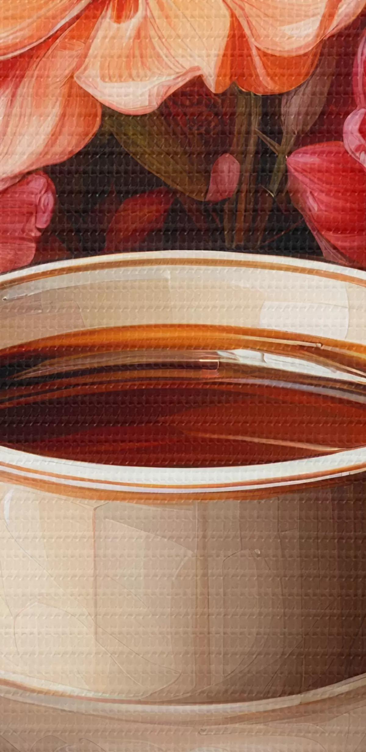 Obraz filiżankę kawy i bukiet kwiatów Nr s41411