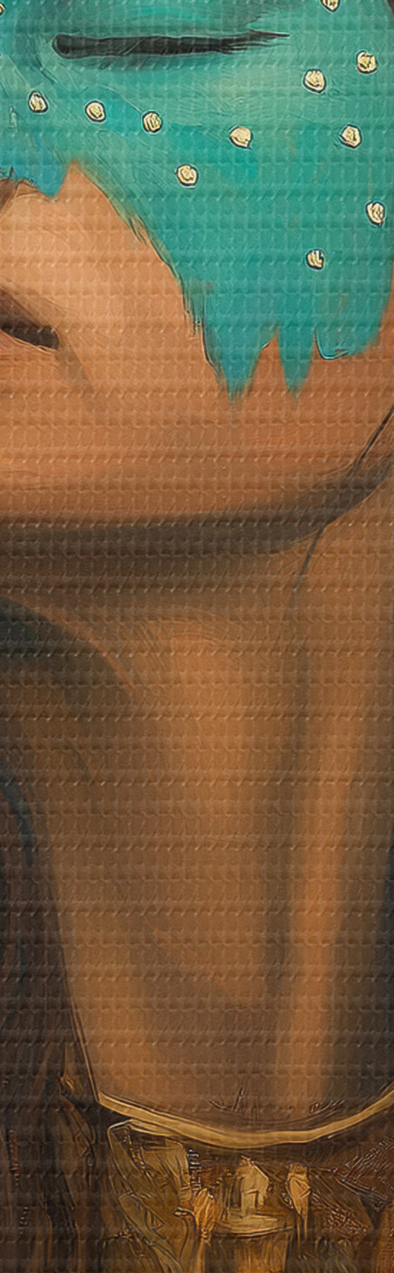 Drobny splot nici na tym płótnie przypomina powierzchnię profesjonalnych płócien artystycznych.