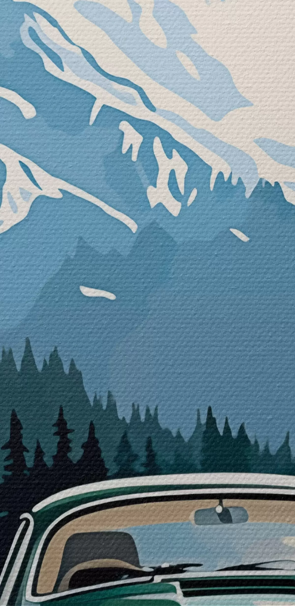 Obraz Samochód retro na zimowej górskiej drodze Nr s41478