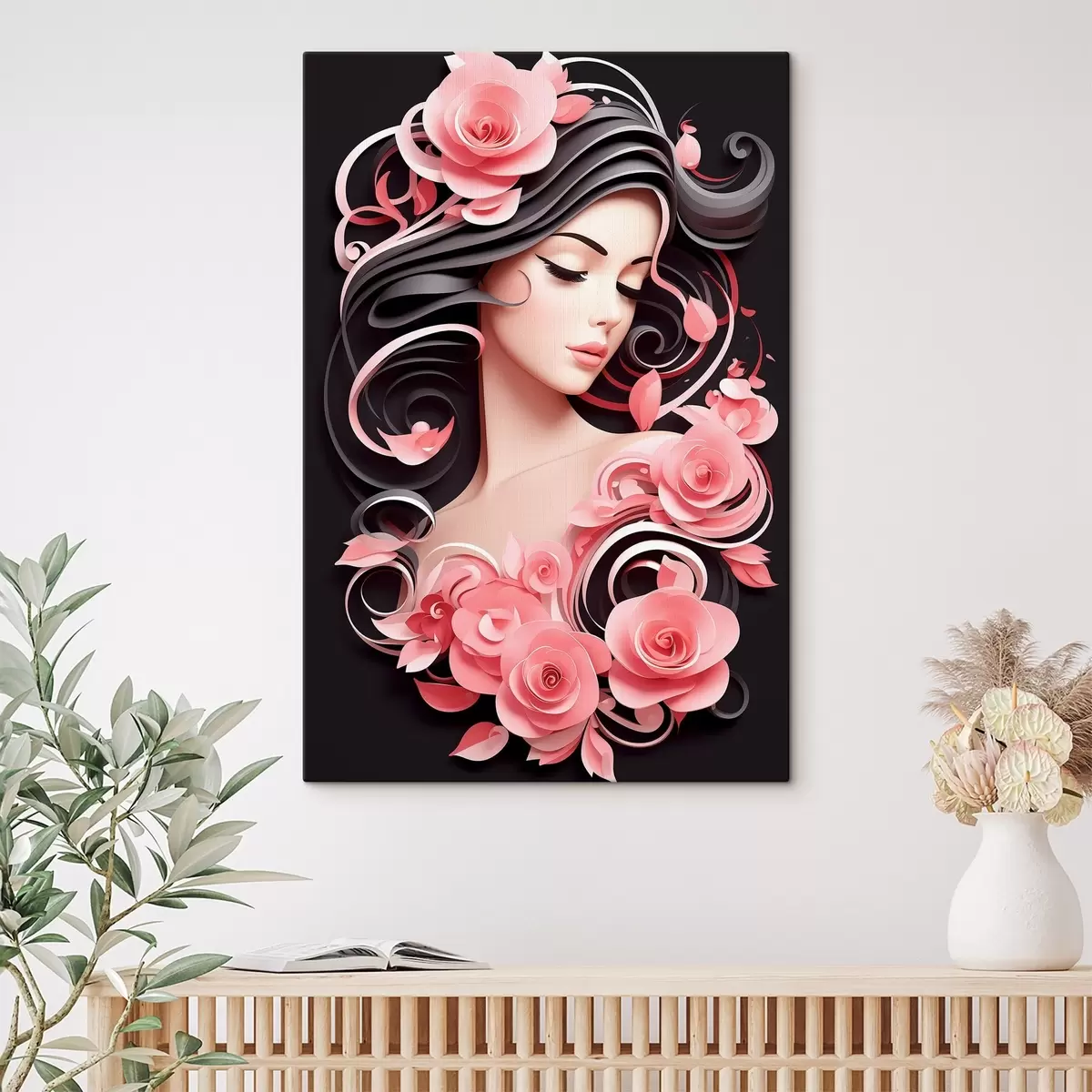 Obraz Niezwykła ilustracja dziewczyny z różą we włosach s41541