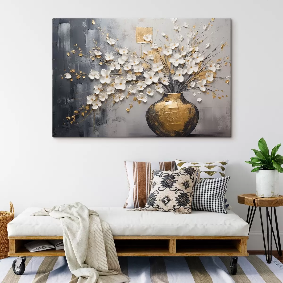 Obraz Wolumetryczne małe lekkie kwiaty w wazonie, imitacja obrazu olejnego s41558