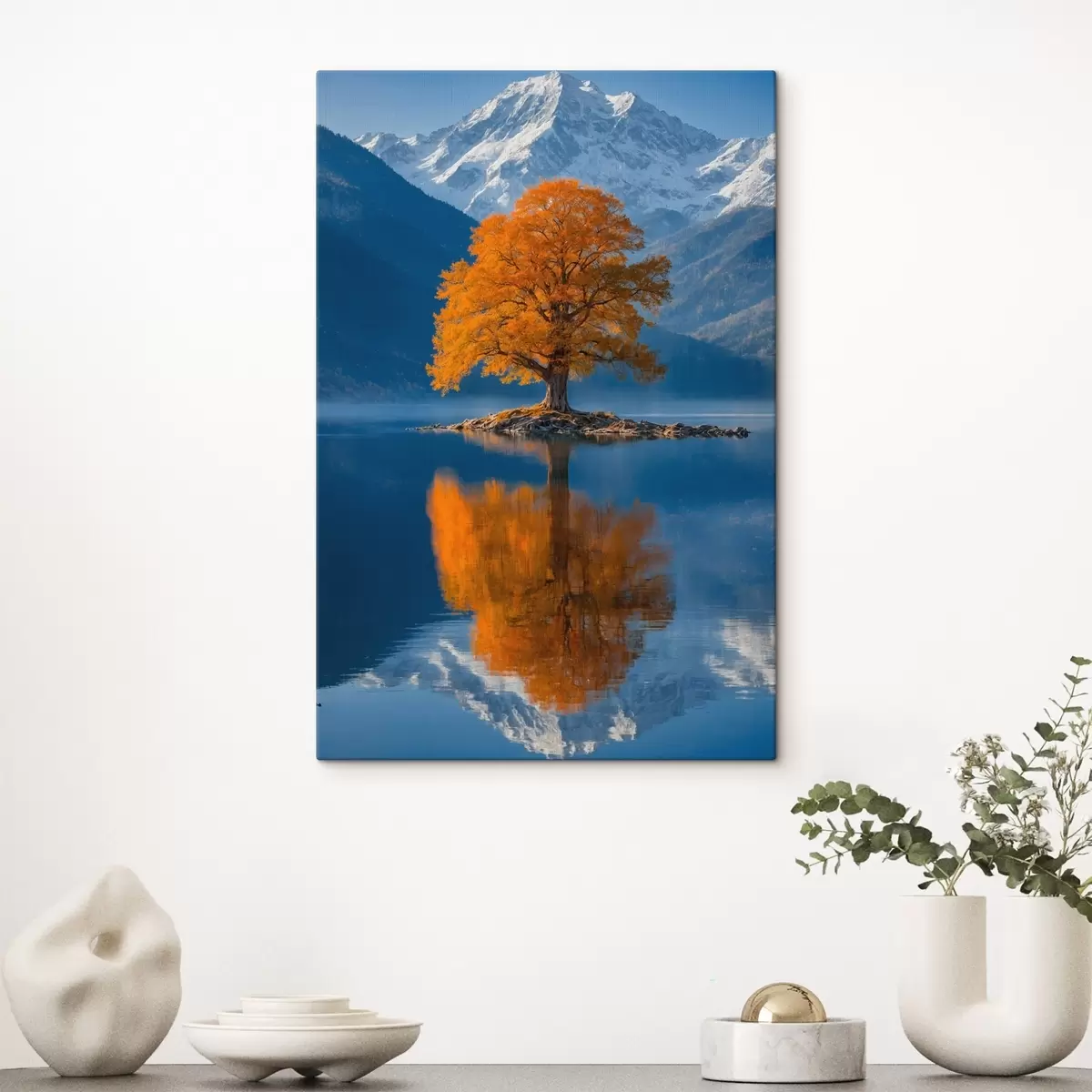 Obraz Drzewo pośrodku jeziora na tle gór Nr s41585
