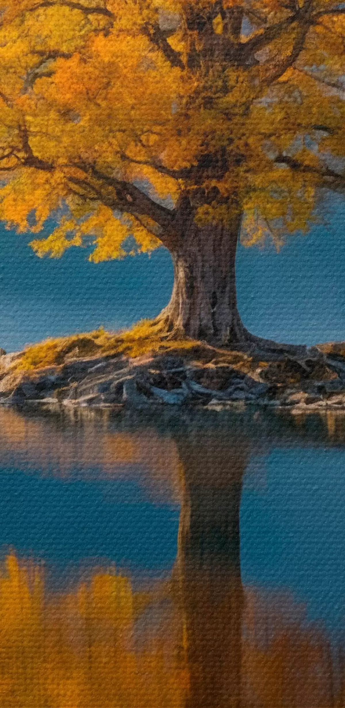 Obraz Drzewo pośrodku jeziora na tle gór Nr s41585