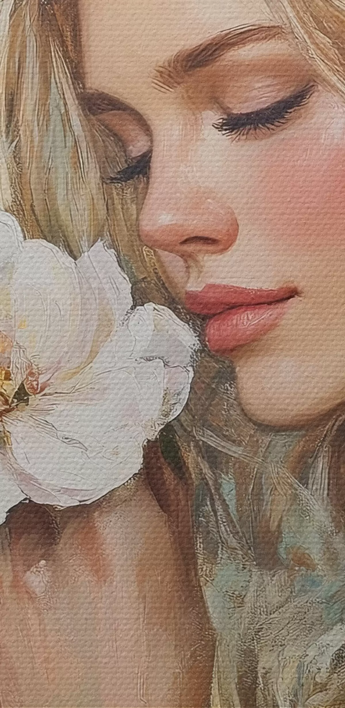 Drobny splot nici na tym płótnie przypomina powierzchnię profesjonalnych płócien artystycznych.