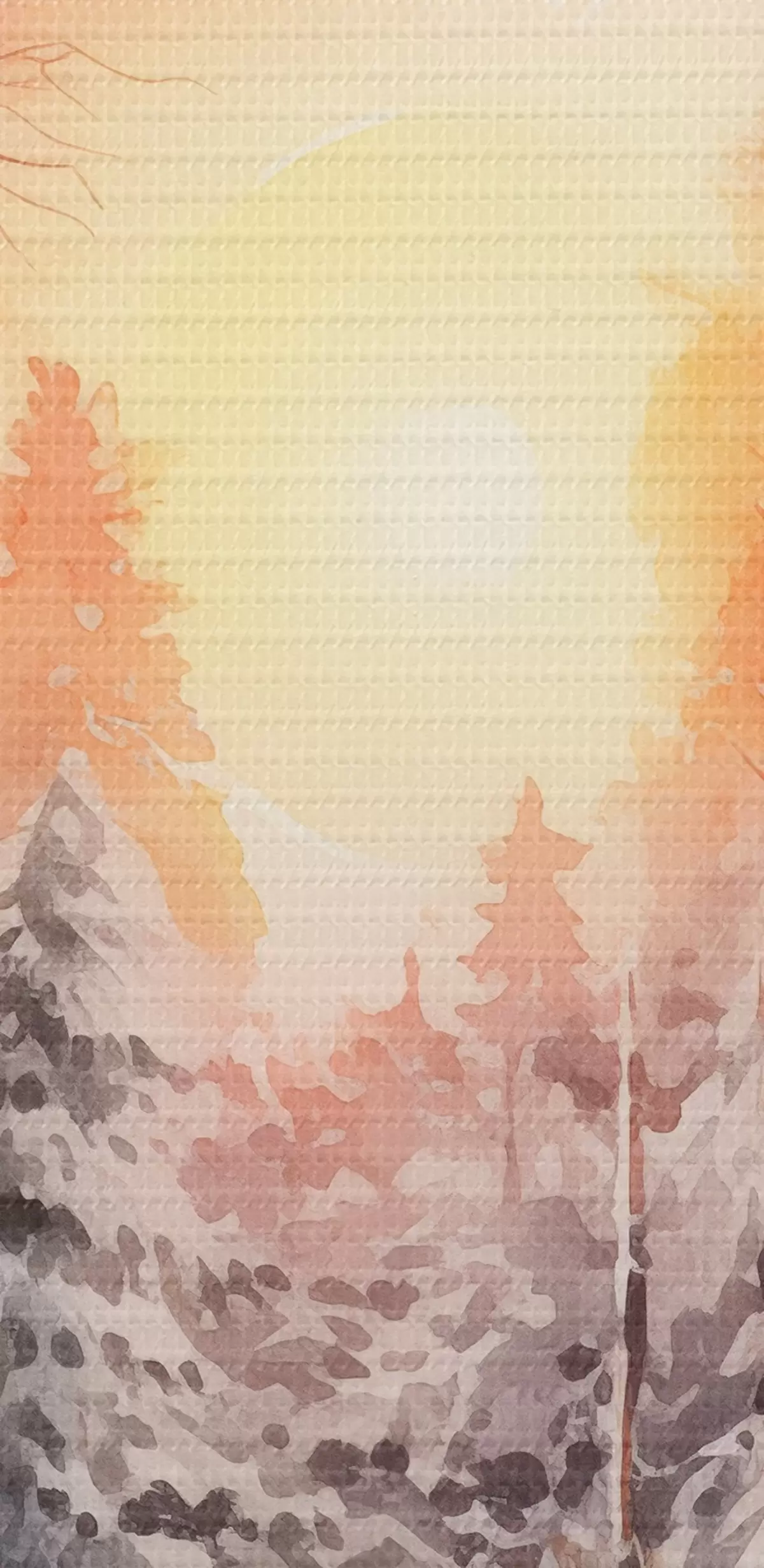 Obraz Piękna zima, akwarela las, śnieżny, drzewa, różowe niebo, zachód słońca Nr s41641