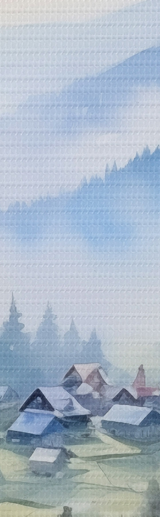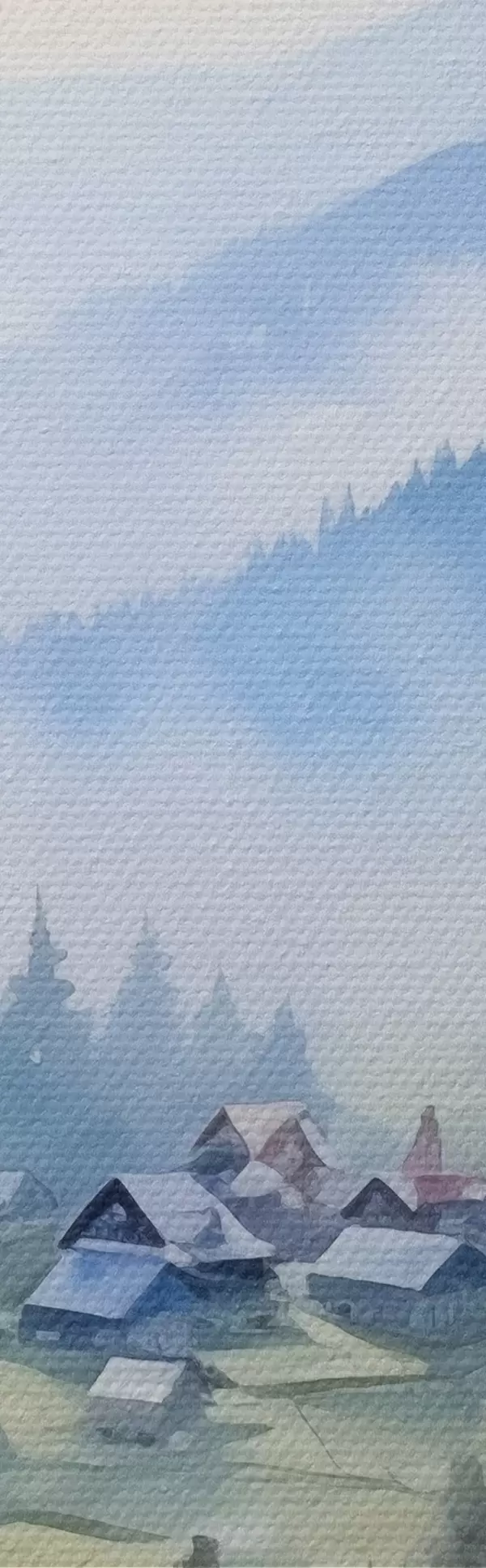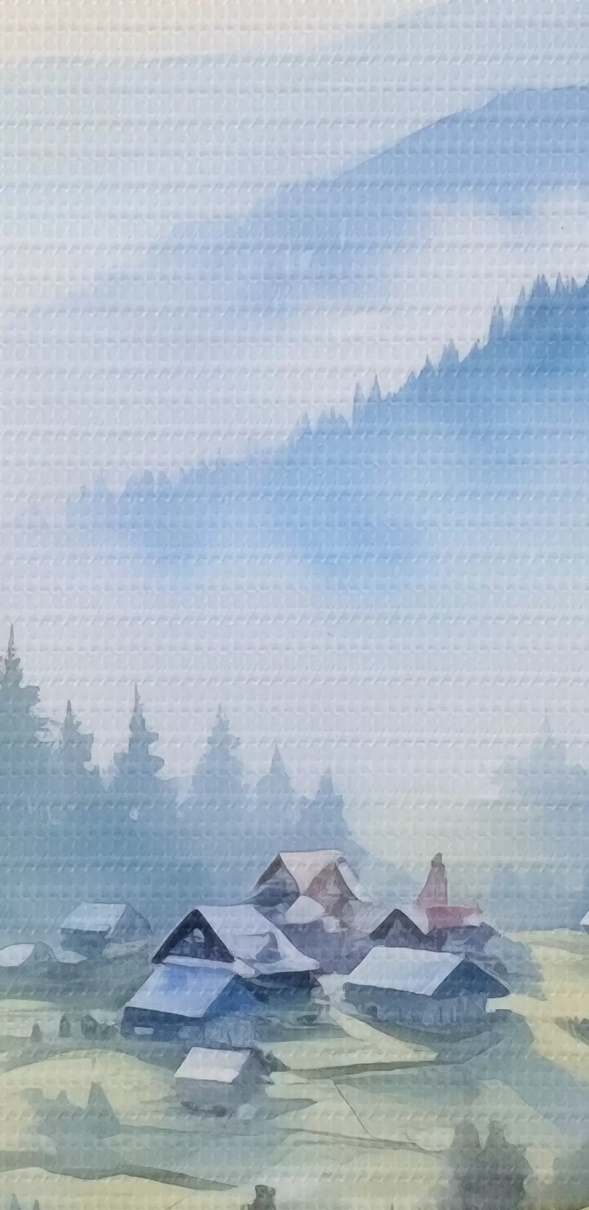 Obraz Karpacka wioska w mglistych górach, las, akwarela Nr s41648