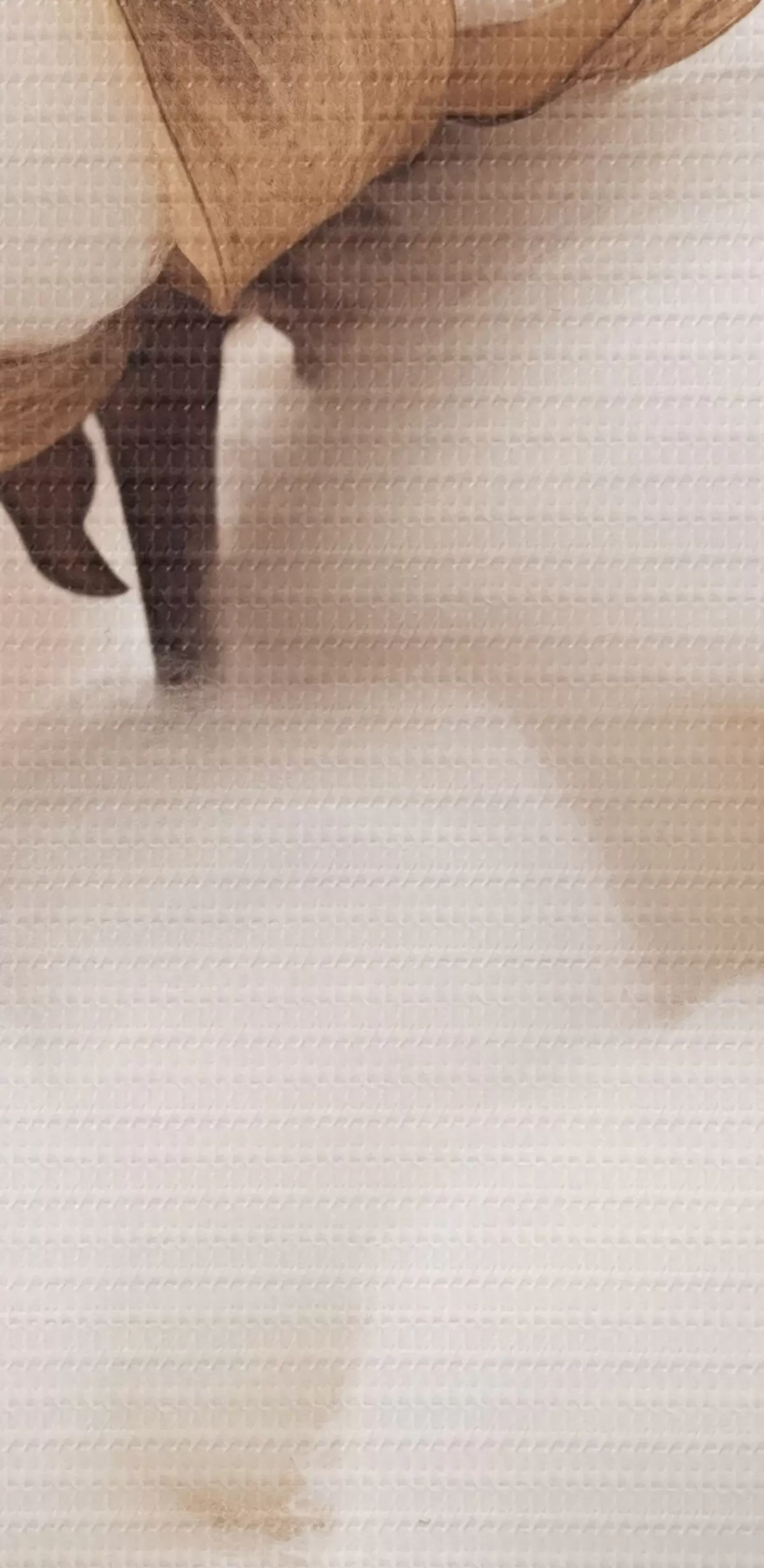 Drobny splot nici na tym płótnie przypomina powierzchnię profesjonalnych płócien artystycznych.