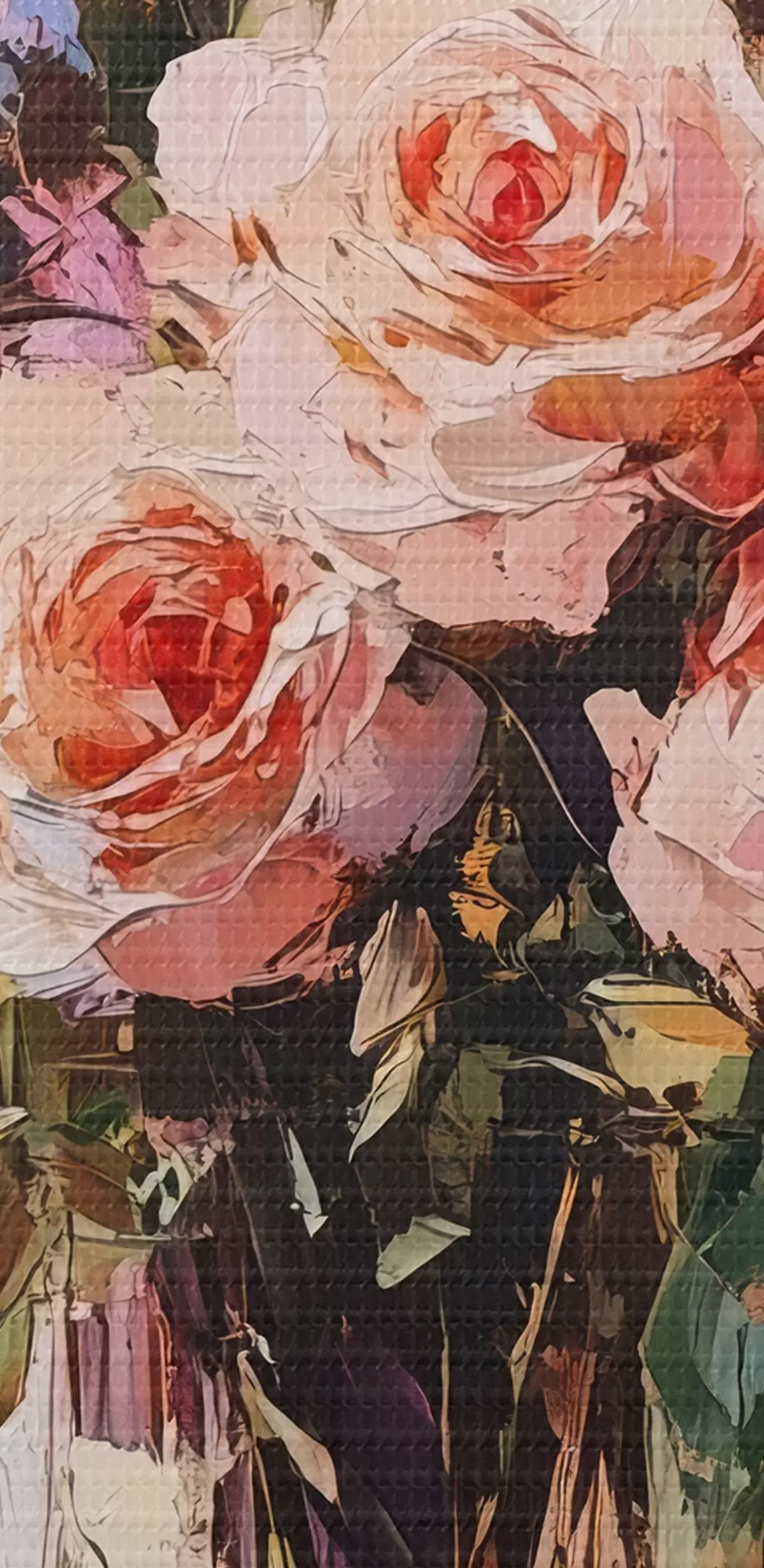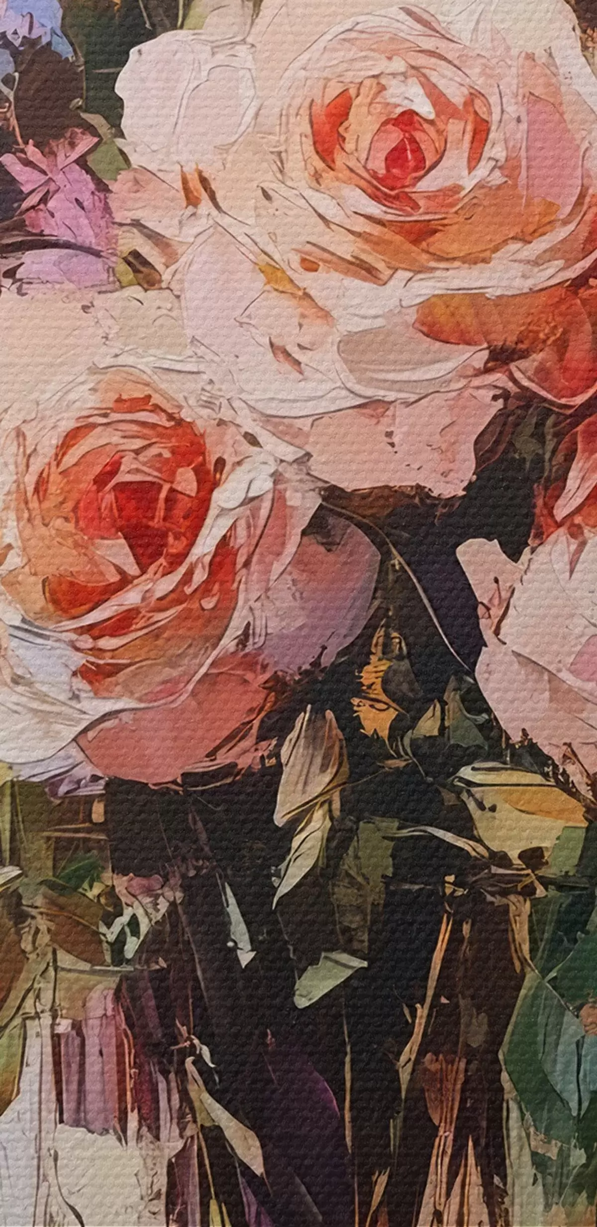 Drobny splot nici na tym płótnie przypomina powierzchnię profesjonalnych płócien artystycznych.