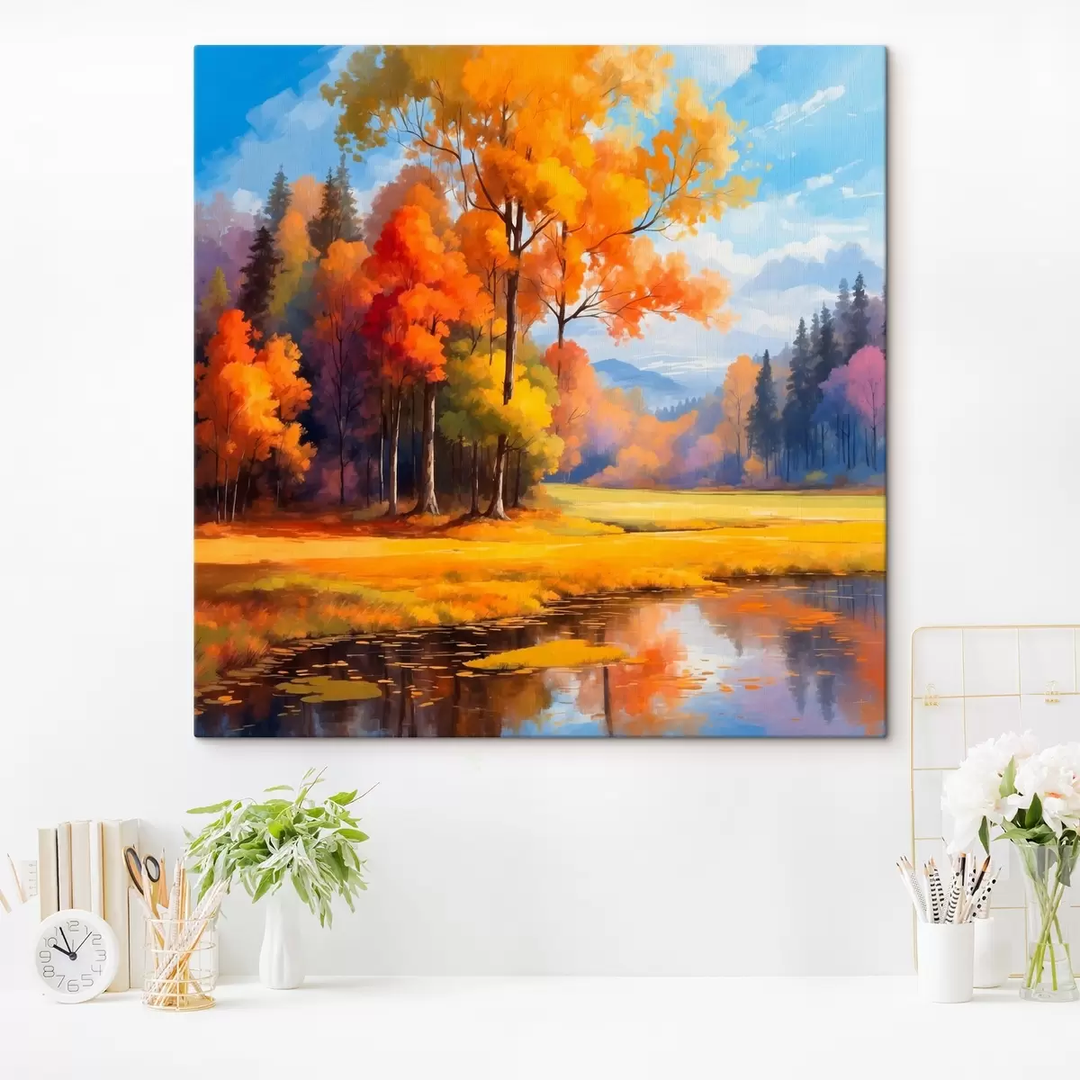 Obraz Jezioro i jesienny las w stylu akrylowym s41766