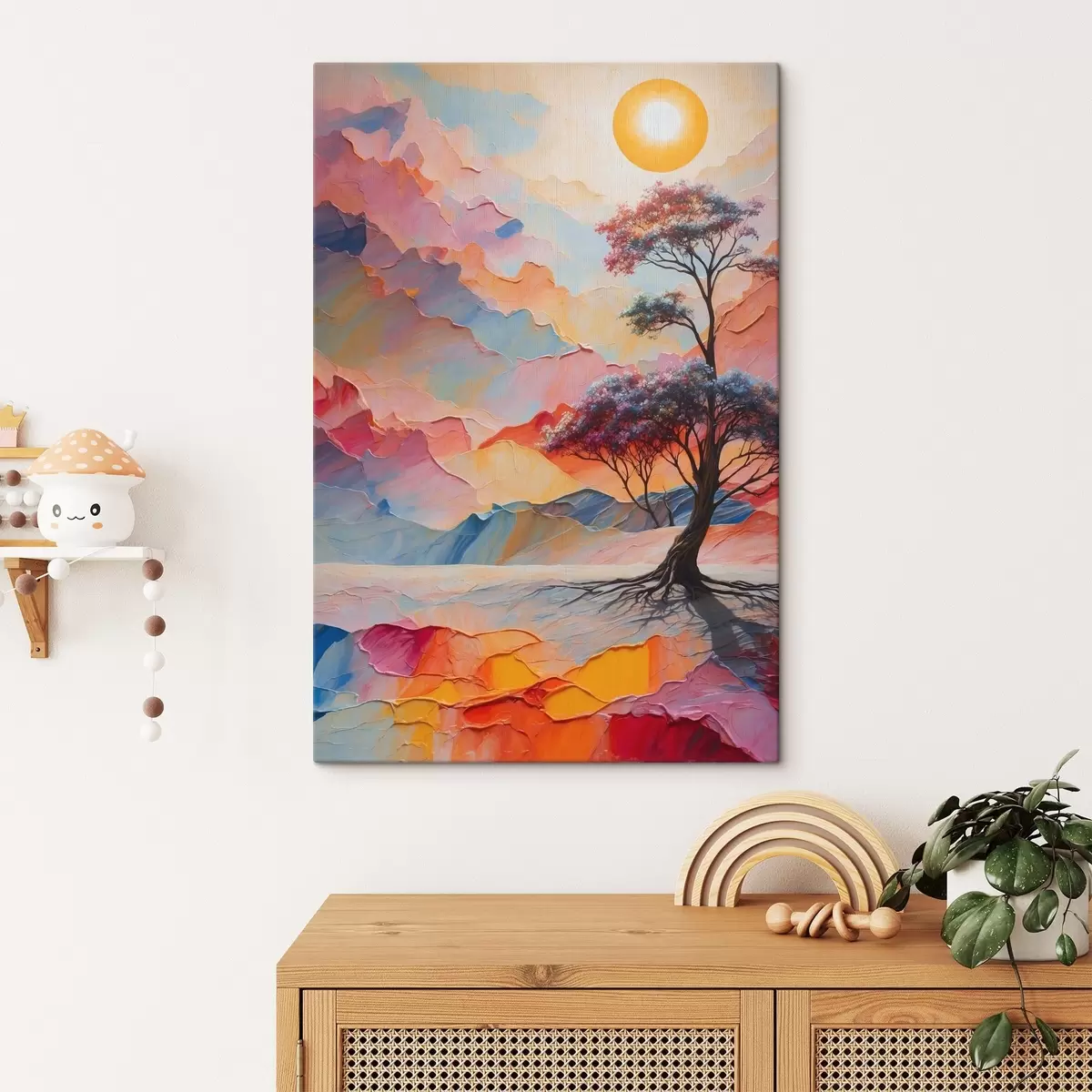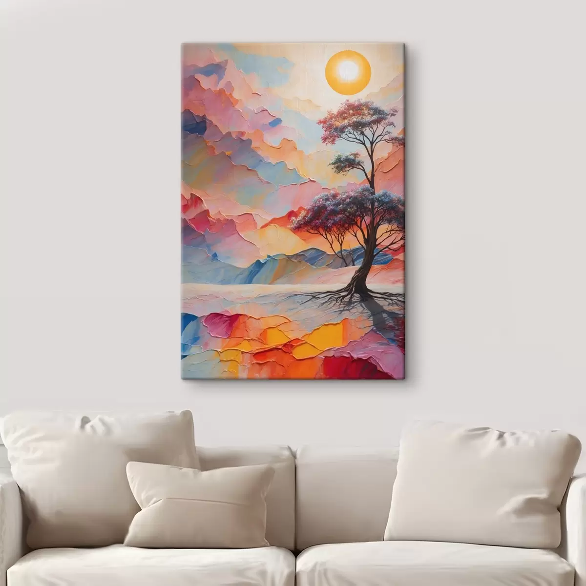 Obraz Drzewo i słońce na abstrakcyjnym tle w stylu akrylowym Nr s41771