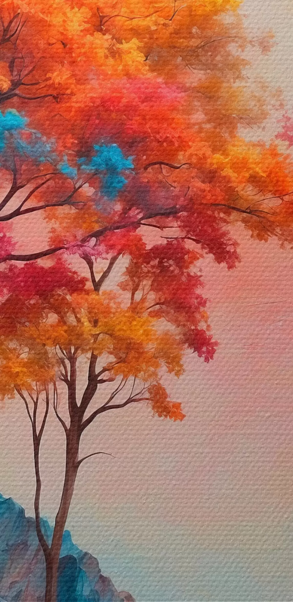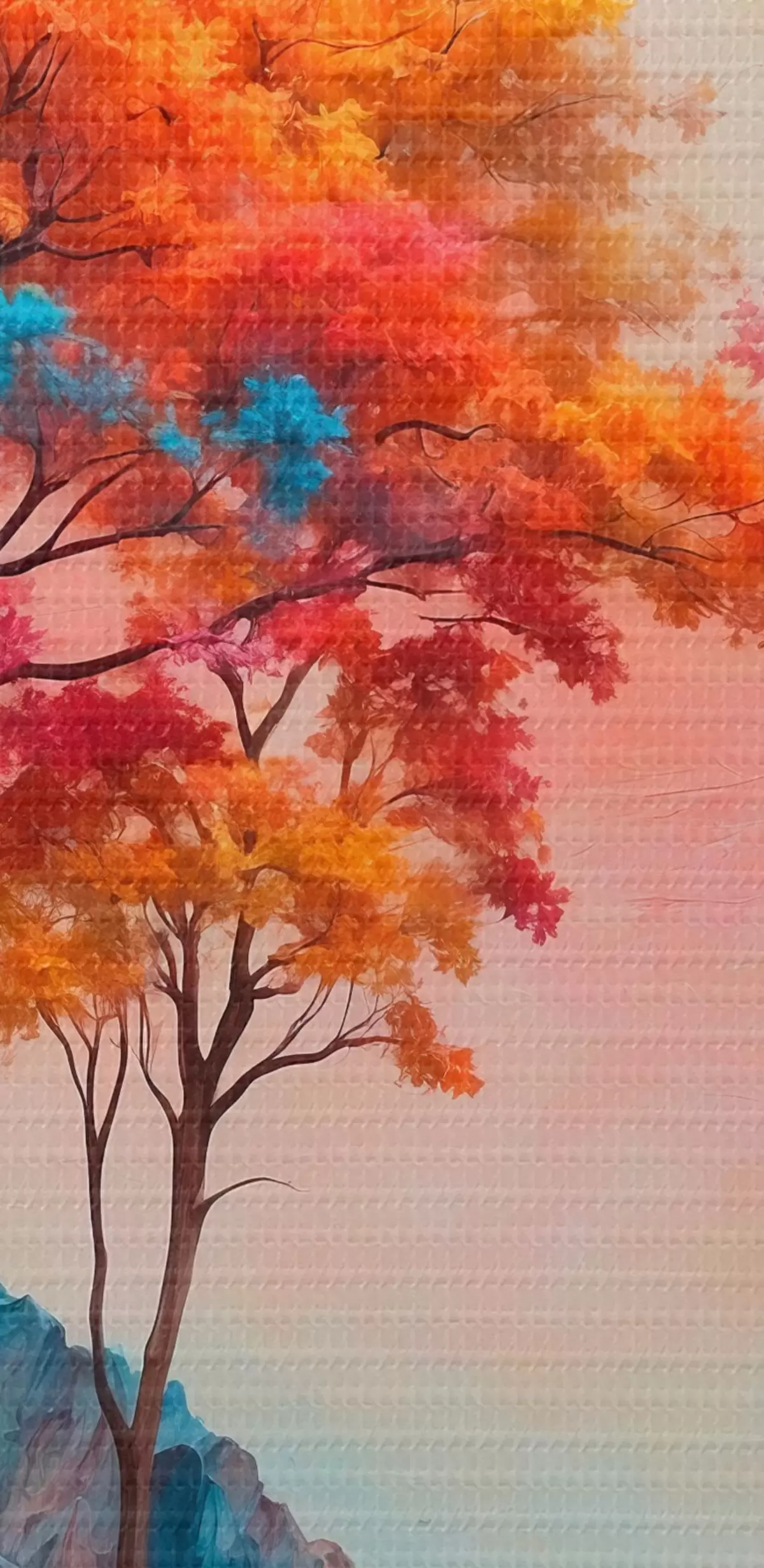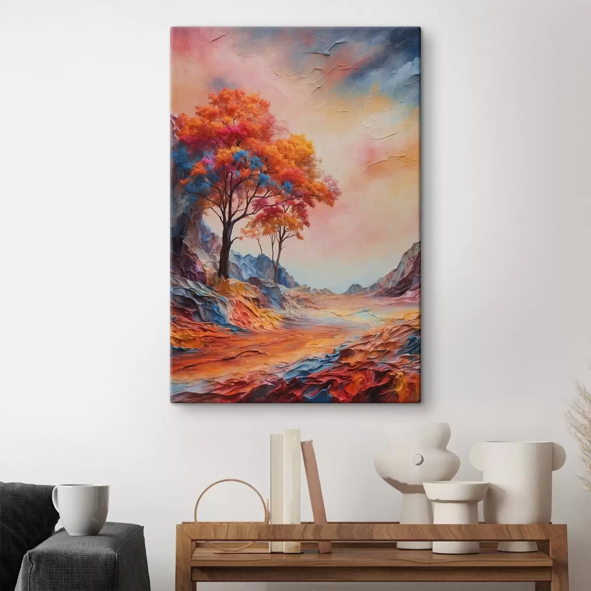 Obraz Drzewa i abstrakcyjne wielokolorowe góry Nr s41772