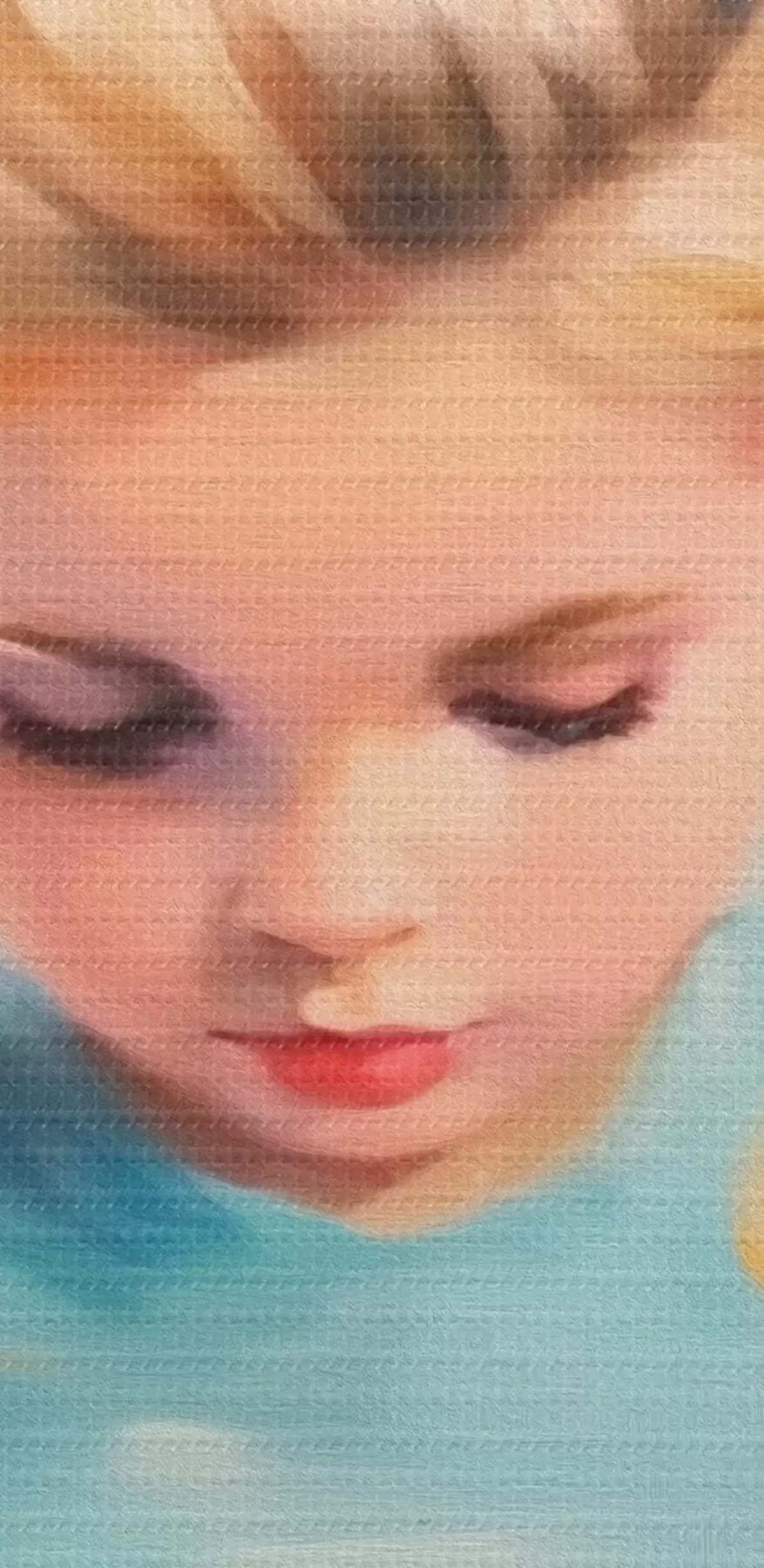 Drobny splot nici na tym płótnie przypomina powierzchnię profesjonalnych płócien artystycznych.