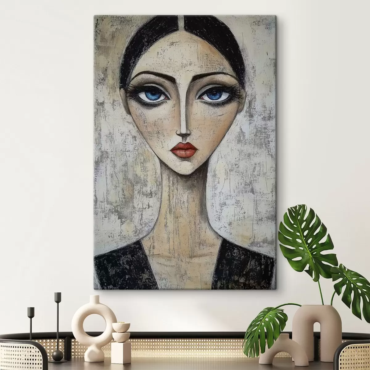 Obraz Portret kobiety z wyrazistymi oczami w stylizowanej technice Nr s41811
