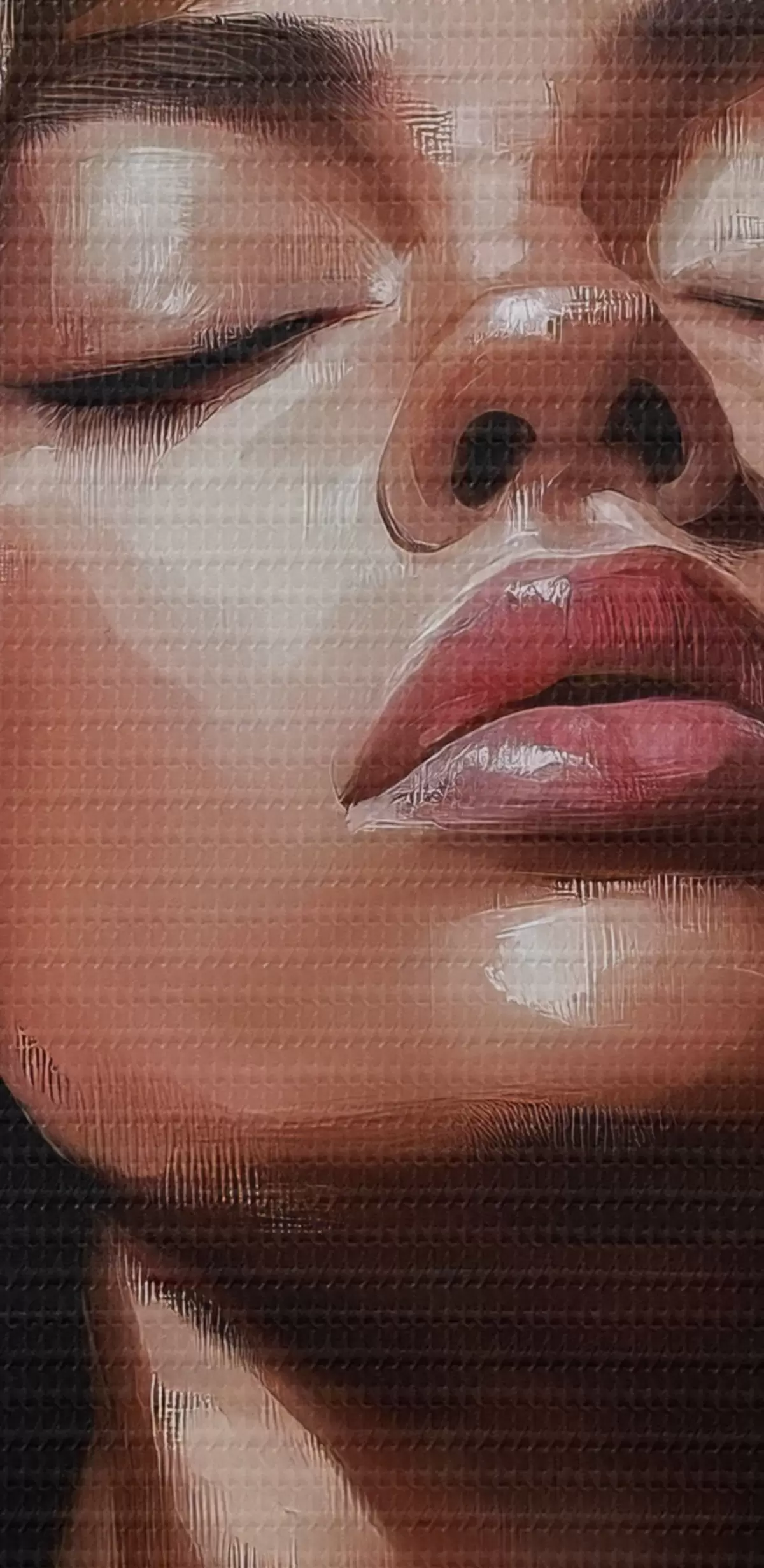 Drobny splot nici na tym płótnie przypomina powierzchnię profesjonalnych płócien artystycznych.