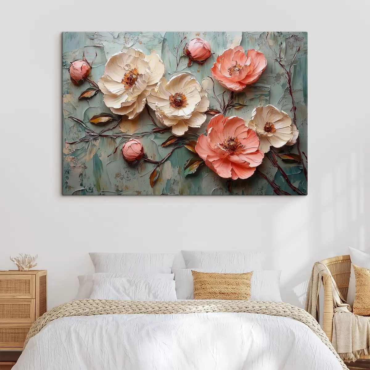 Obraz Gałązka delikatnych kwiatów w stylu pociągnięć farby olejnej Nr s41827