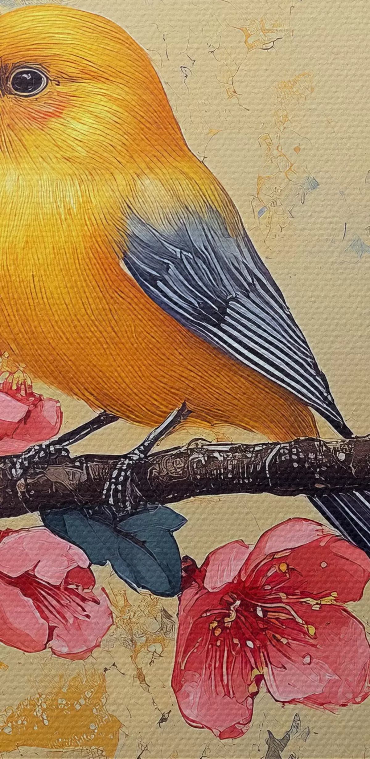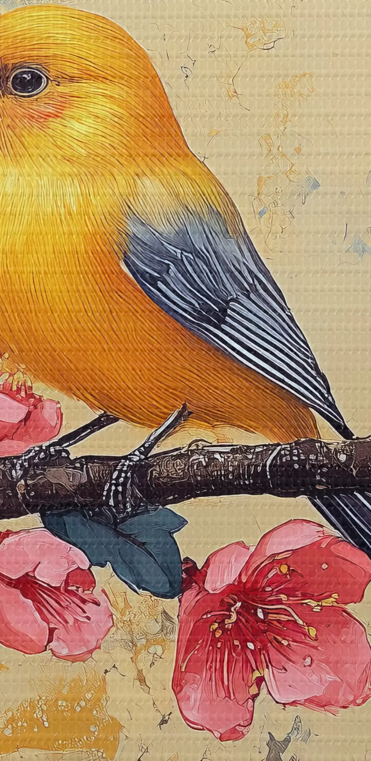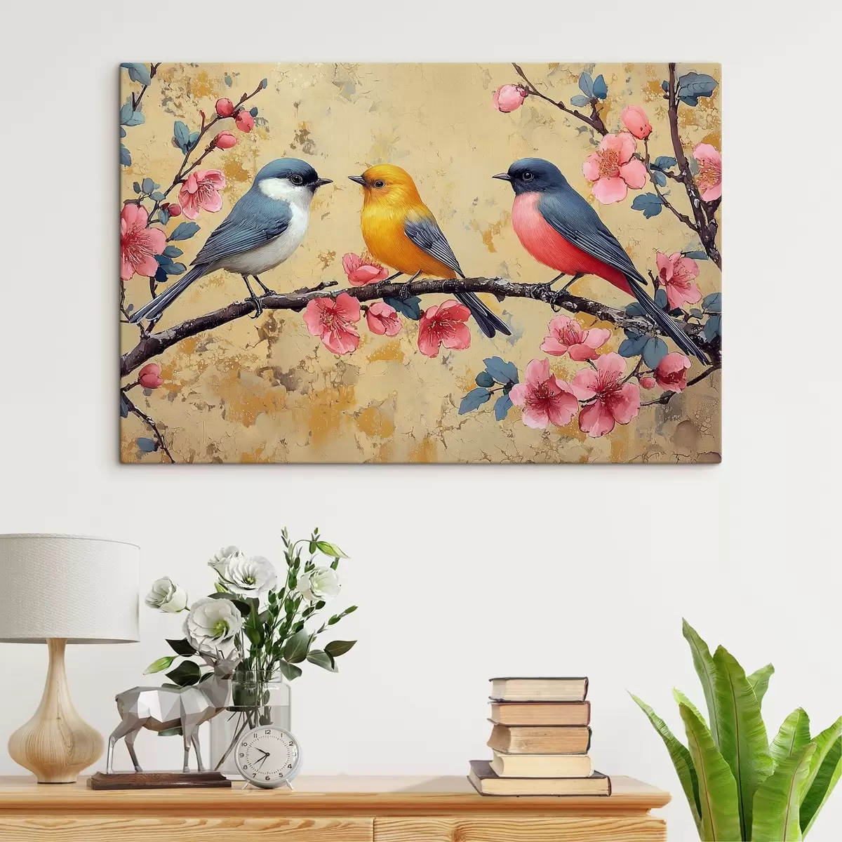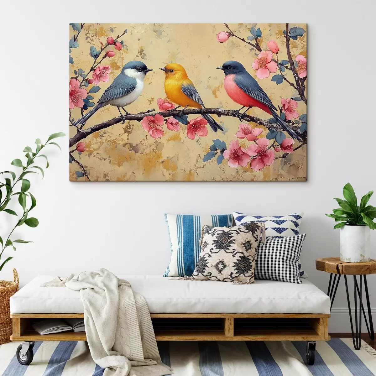 Obraz Wróble na gałęzi sakury w stylu malarstwa olejnego s41835