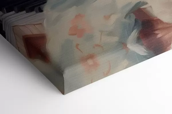 Drobny splot nici na tym płótnie przypomina powierzchnię profesjonalnych płócien artystycznych.