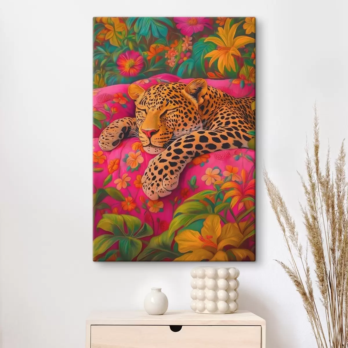 Obraz Śpiący lampart wśród kwiatów Nr s41929