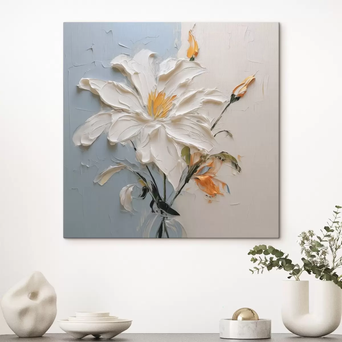 Obraz Biała lilia abstrakcyjna imitacja pociągnięć pędzla s41939