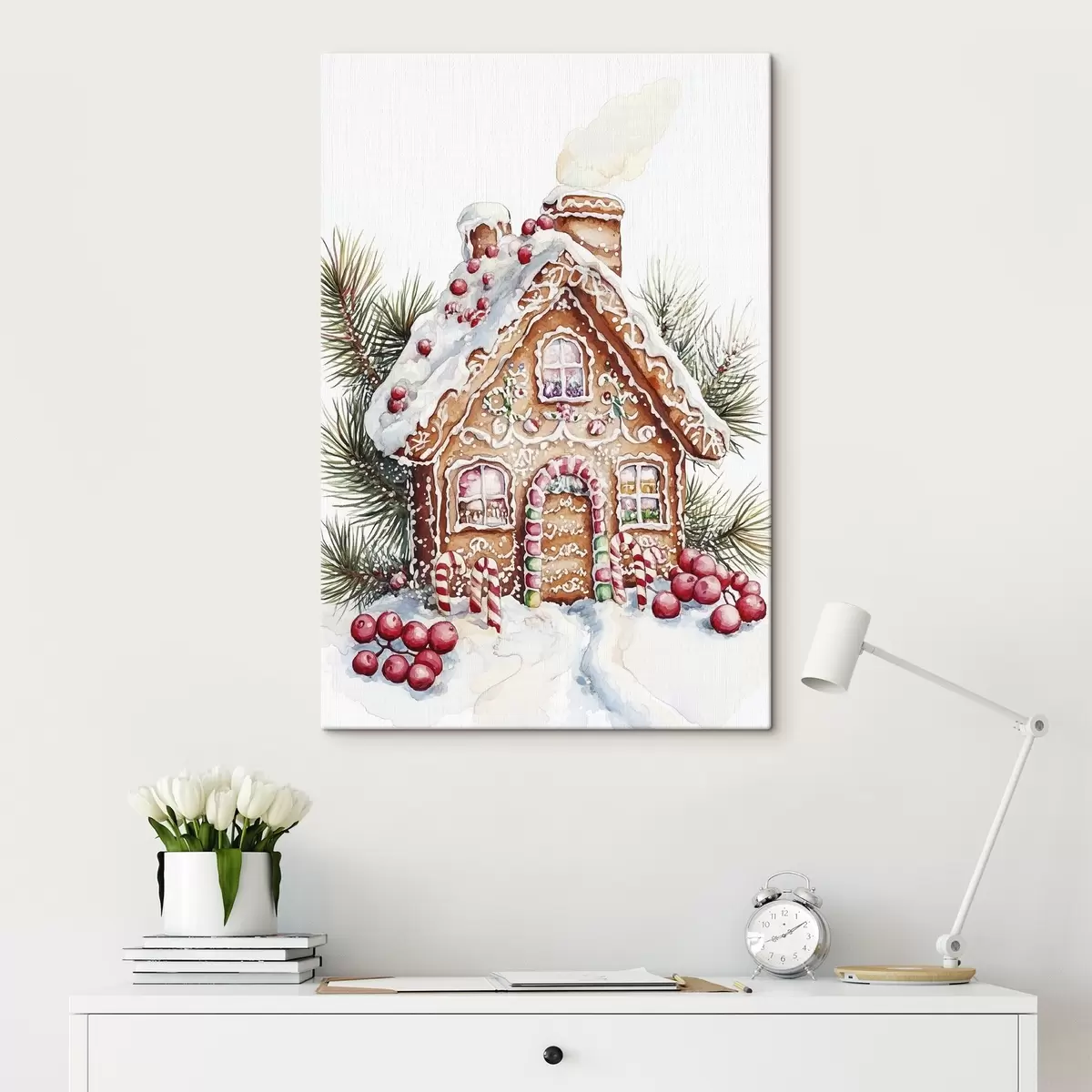 Obraz Domek z piernika, gałęzie sosny, czerwone jagody, Boże Narodzenie Nr s41946