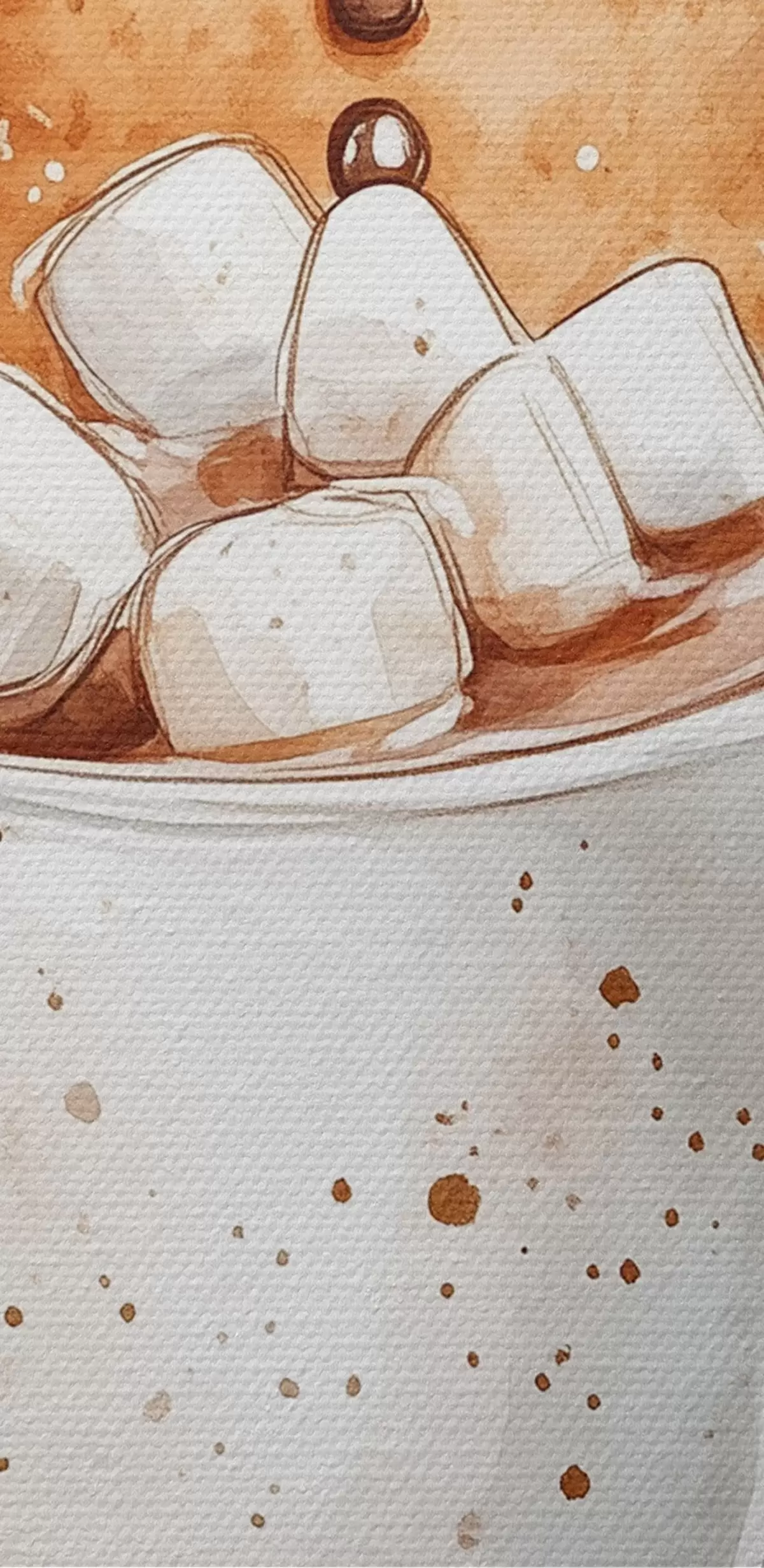 Obraz Piernikowe ludziki w filiżance kawy, cynamon, pianki, styl akwareli, beżowy Nr s41948