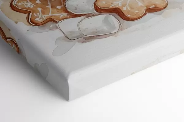 Obraz Piernikowe ludziki w filiżance kawy, cynamon, pianki, styl akwareli, beżowy s41948