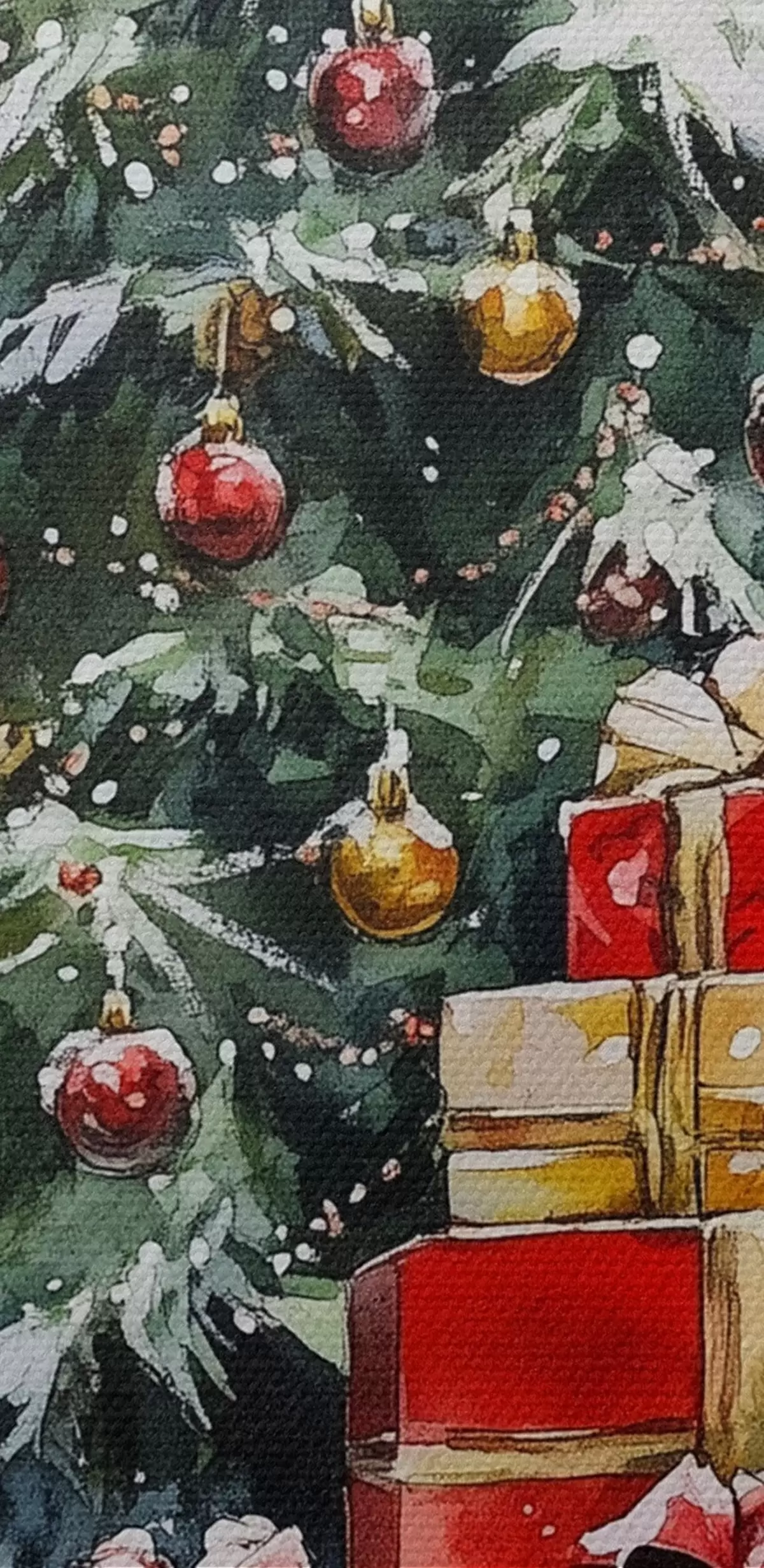 Obraz Świąteczna choinka z zapakowanymi prezentami, śnieg, styl akwareli Nr s41953