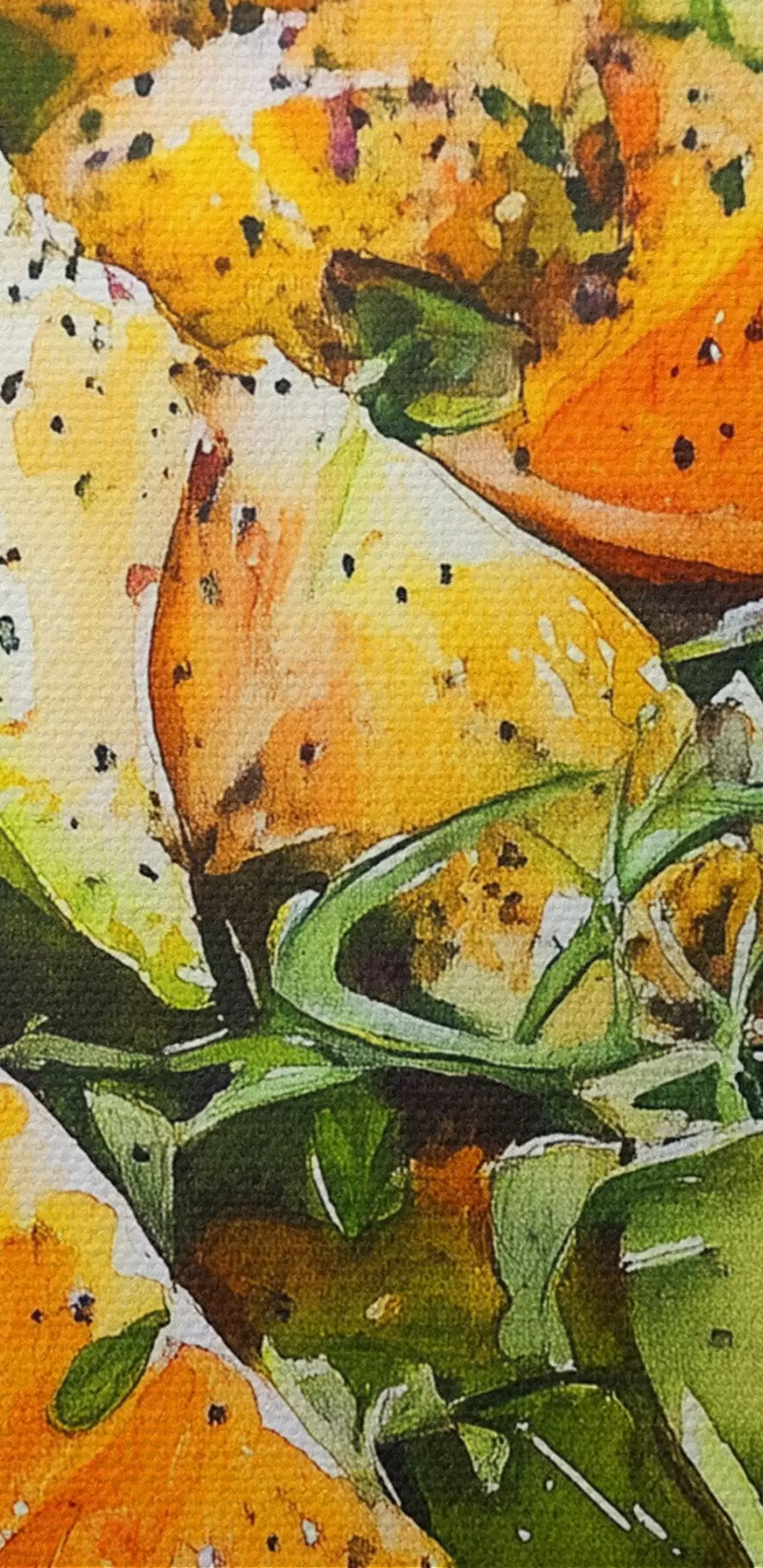 Obraz Sałatka w stylu akwareli z dynią, pomarańczami i awokado  s41957