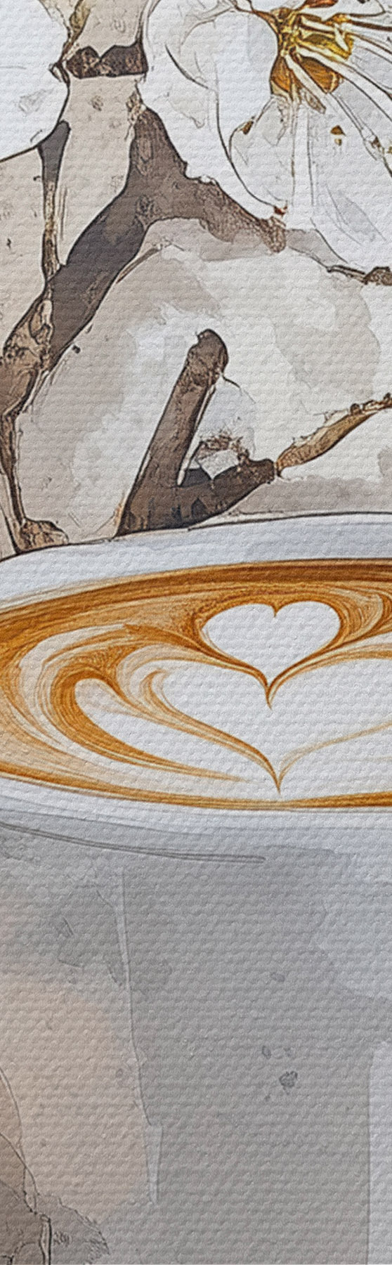 Obraz Piękna filiżanka kawy, kwiaty jaśminu, makaroniki, delikatne akwarelowe kolory Nr s41964