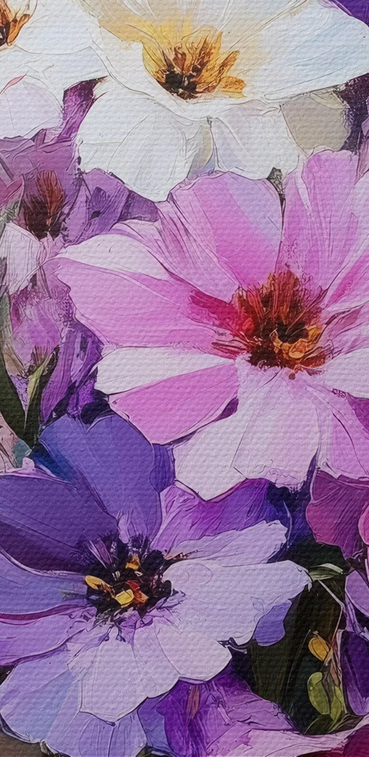 Obraz fioletowe i białe kwiaty w wazonie Nr s41999