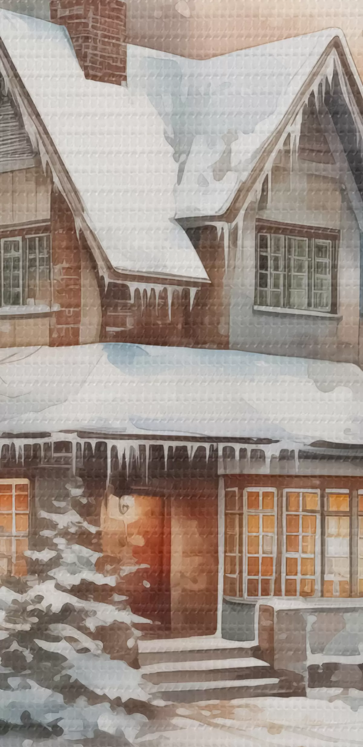 Obraz Dom w zaśnieżonym lesie imitacja akwareli s42137